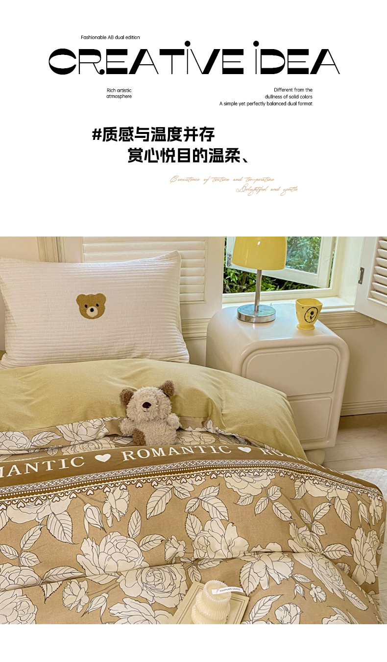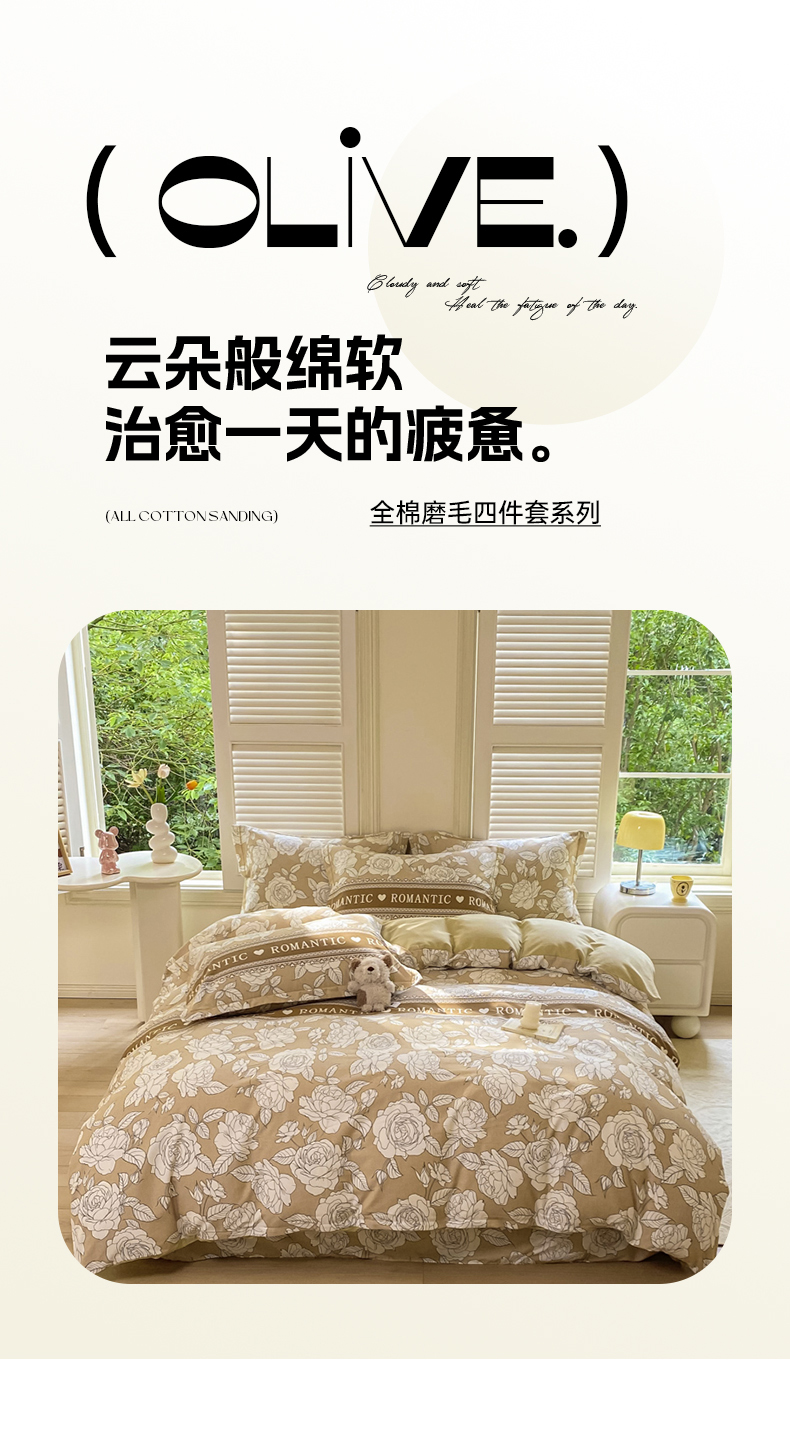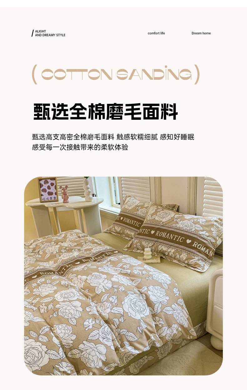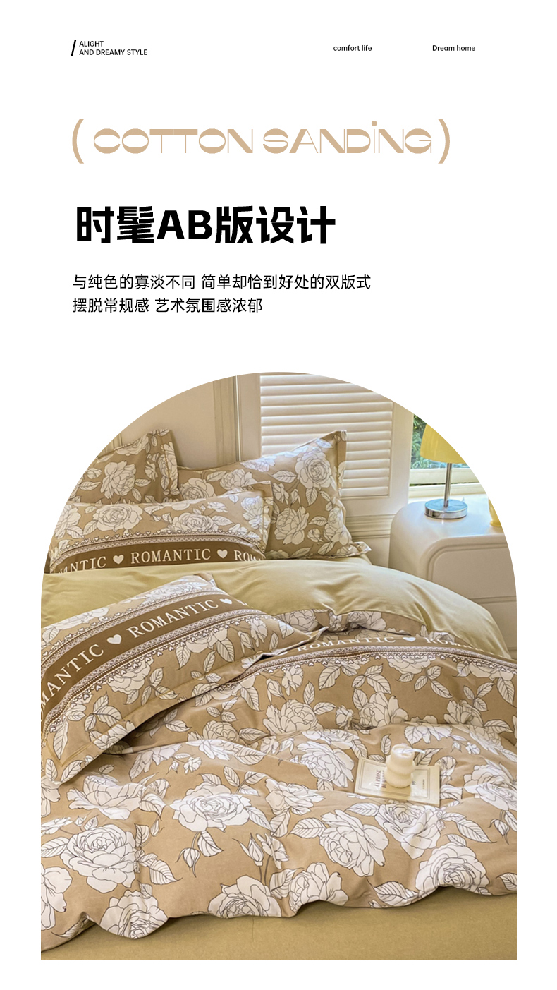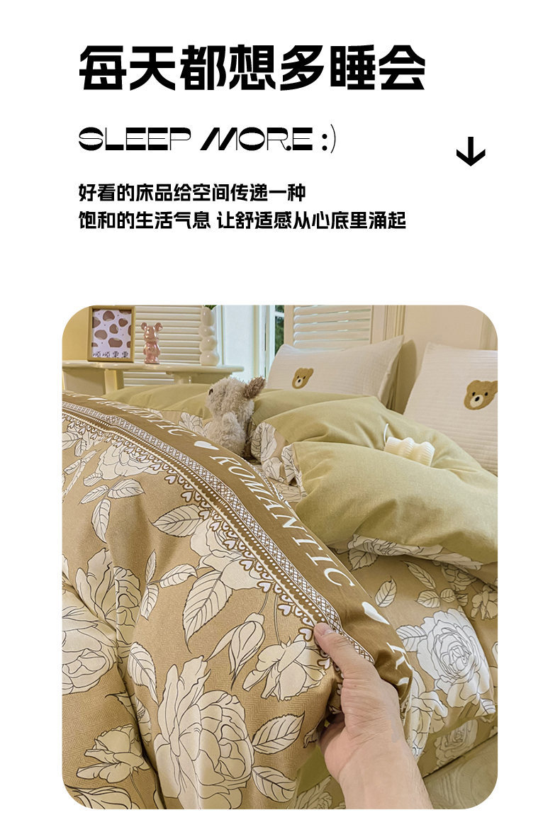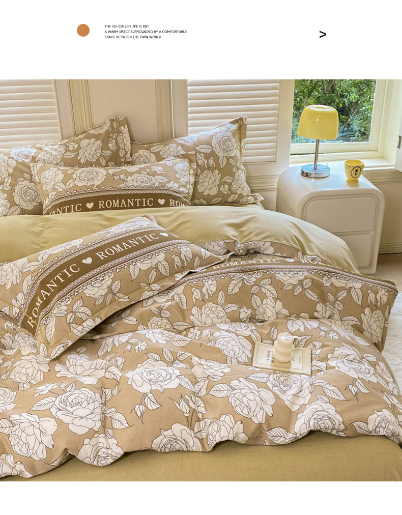 当前位置: 91家纺网 > 商品网购 > 床品套件 > 四件套 > 全棉普通四件套 > 优品阁 2024新款亲肤舒适全棉磨毛四件套学生三件套系列 初恋-咖