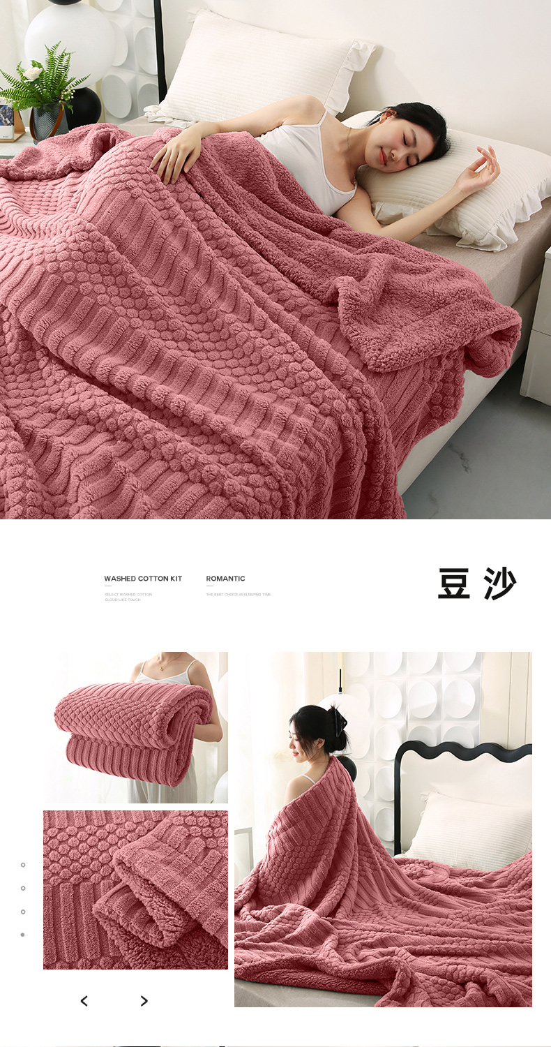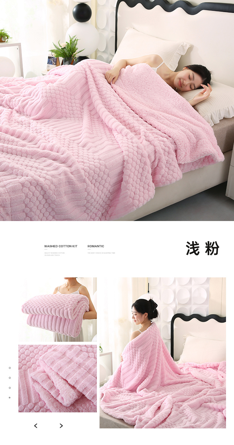 (总)巴木赫 2024新款子母抽条兔毛绒绒毯毯子,宾利蓝,粉色,卡其,墨绿,奶白,葡萄紫,浅驼,深灰,中灰