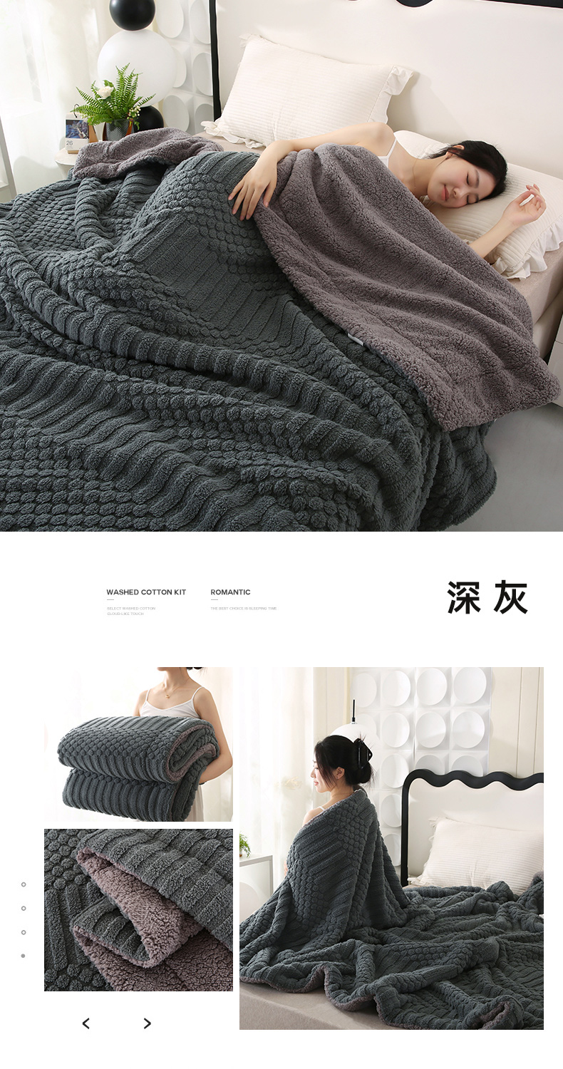 (总)巴木赫 2024新款舒棉绒点点塔芙绒双层配色羊羔绒沙发盖毯,茶绿配色,豆沙配色,灰蓝配色,米白配色,米杏配色,浅粉配色,深灰配色,银灰配色,棕咖配色