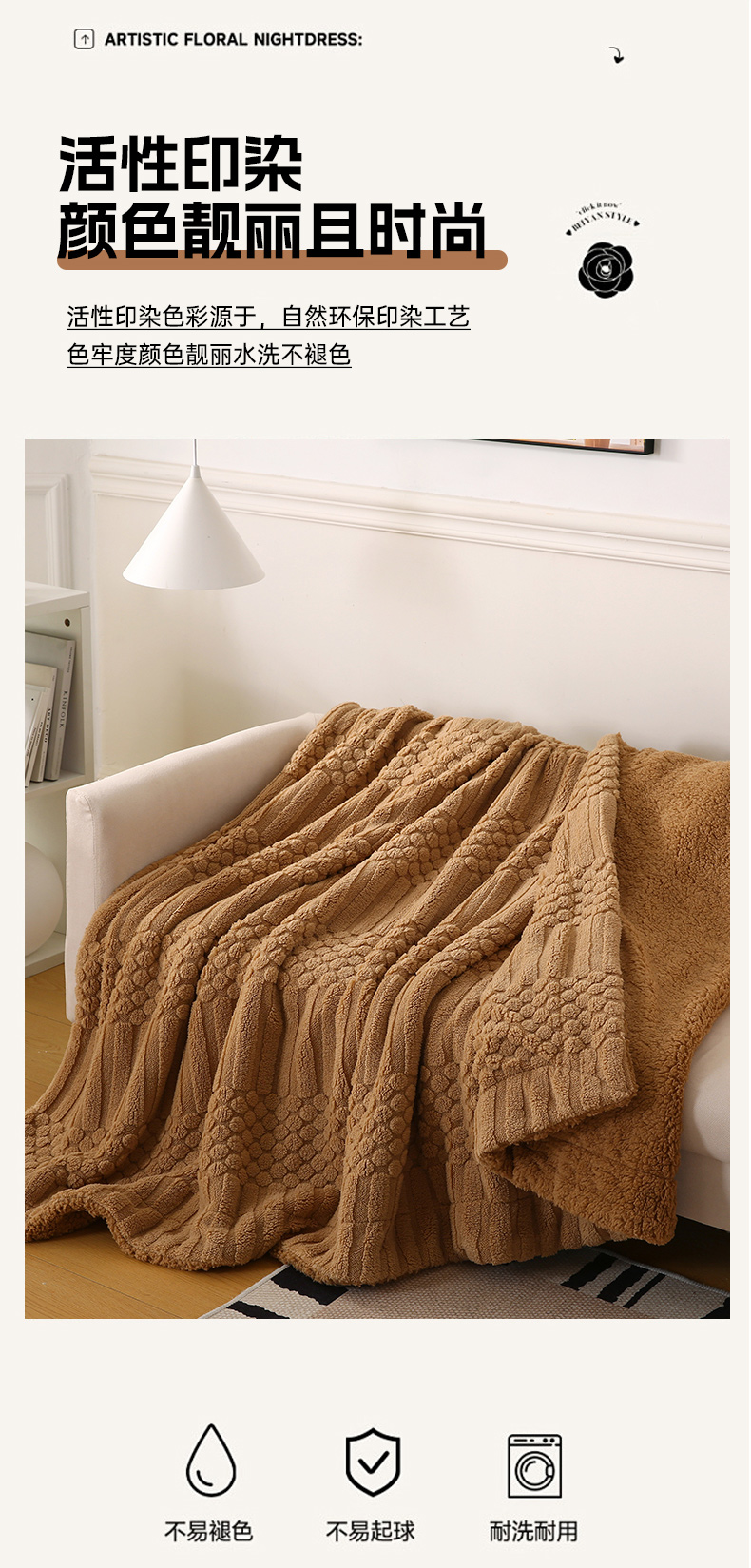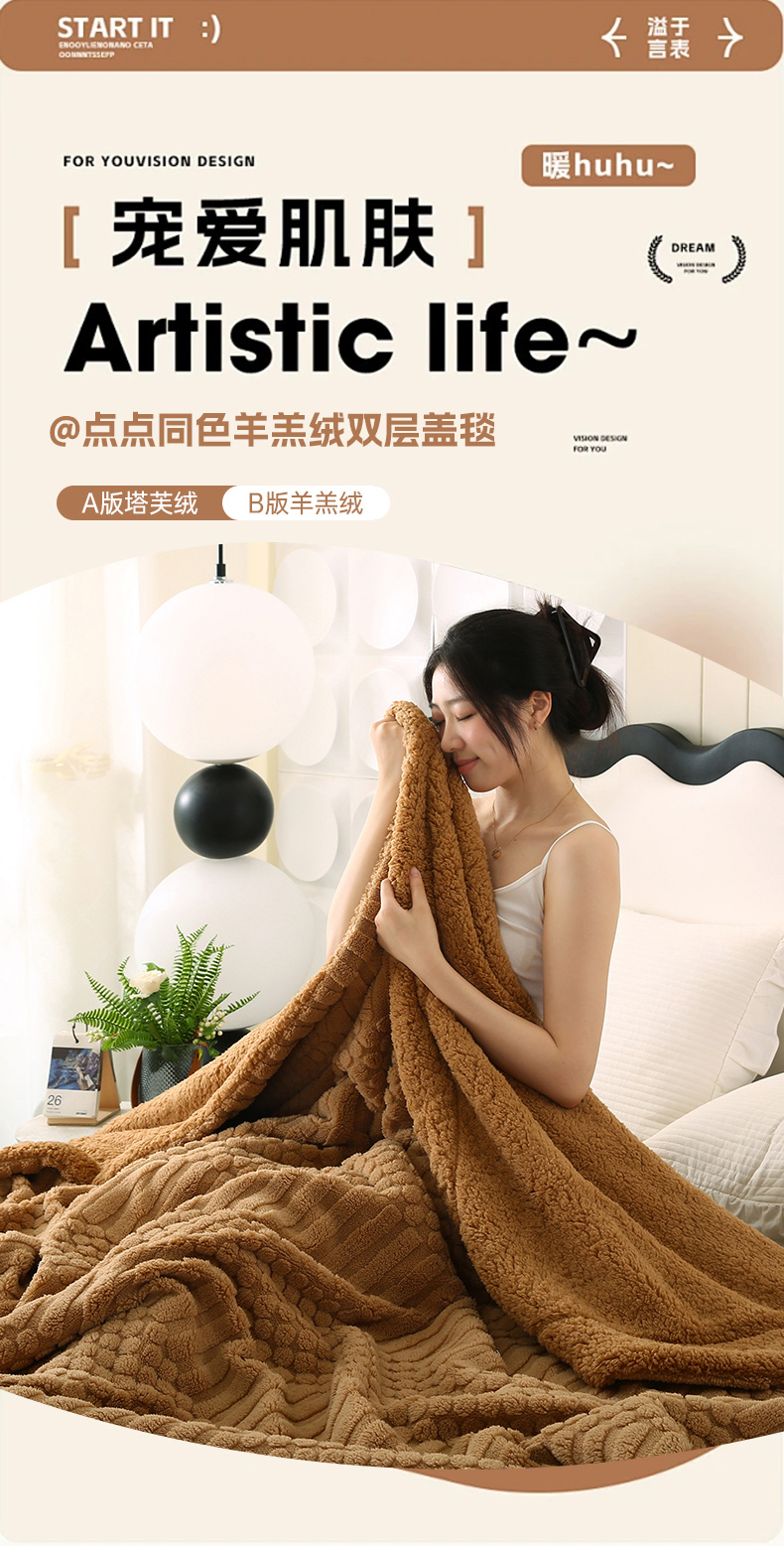 商品名称:(总)巴木赫 2024新款舒棉绒点点塔芙绒双层配色羊羔绒沙发盖毯