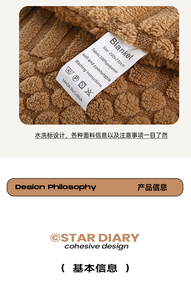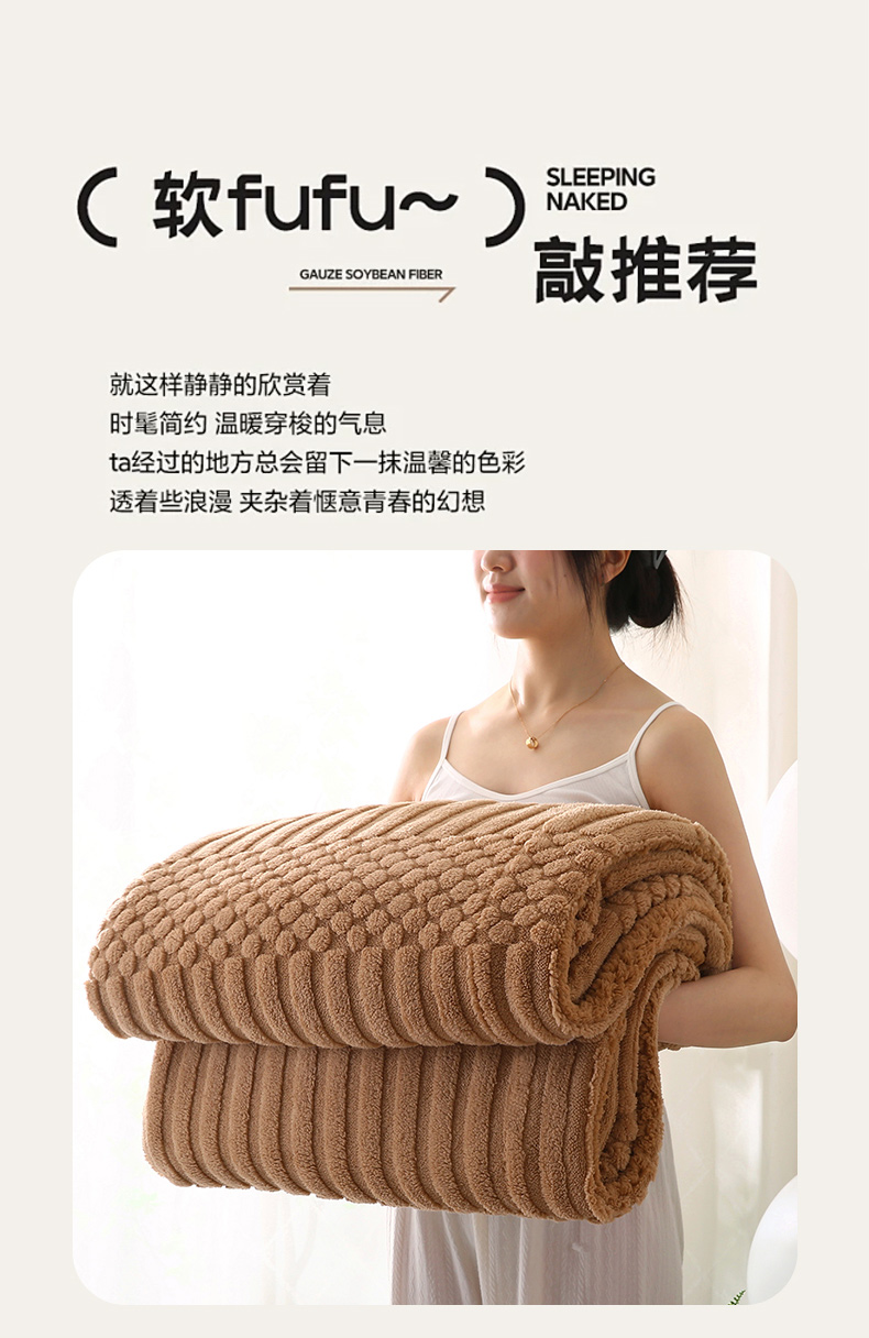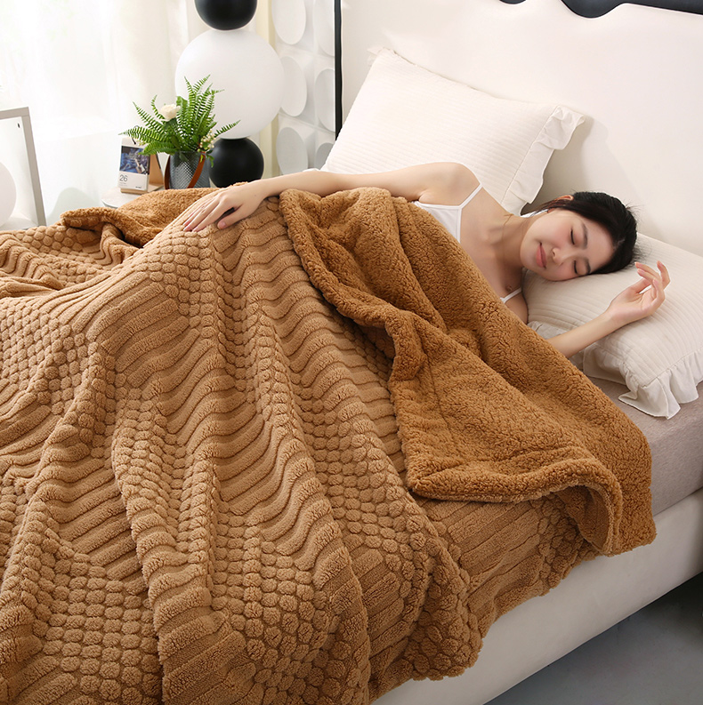 商品名称:巴木赫 2024新款舒棉绒点点塔芙绒双层配色羊羔绒沙发盖毯 棕咖配色