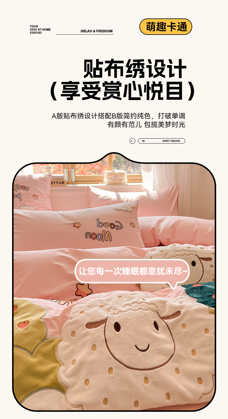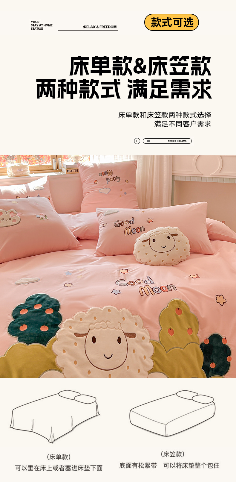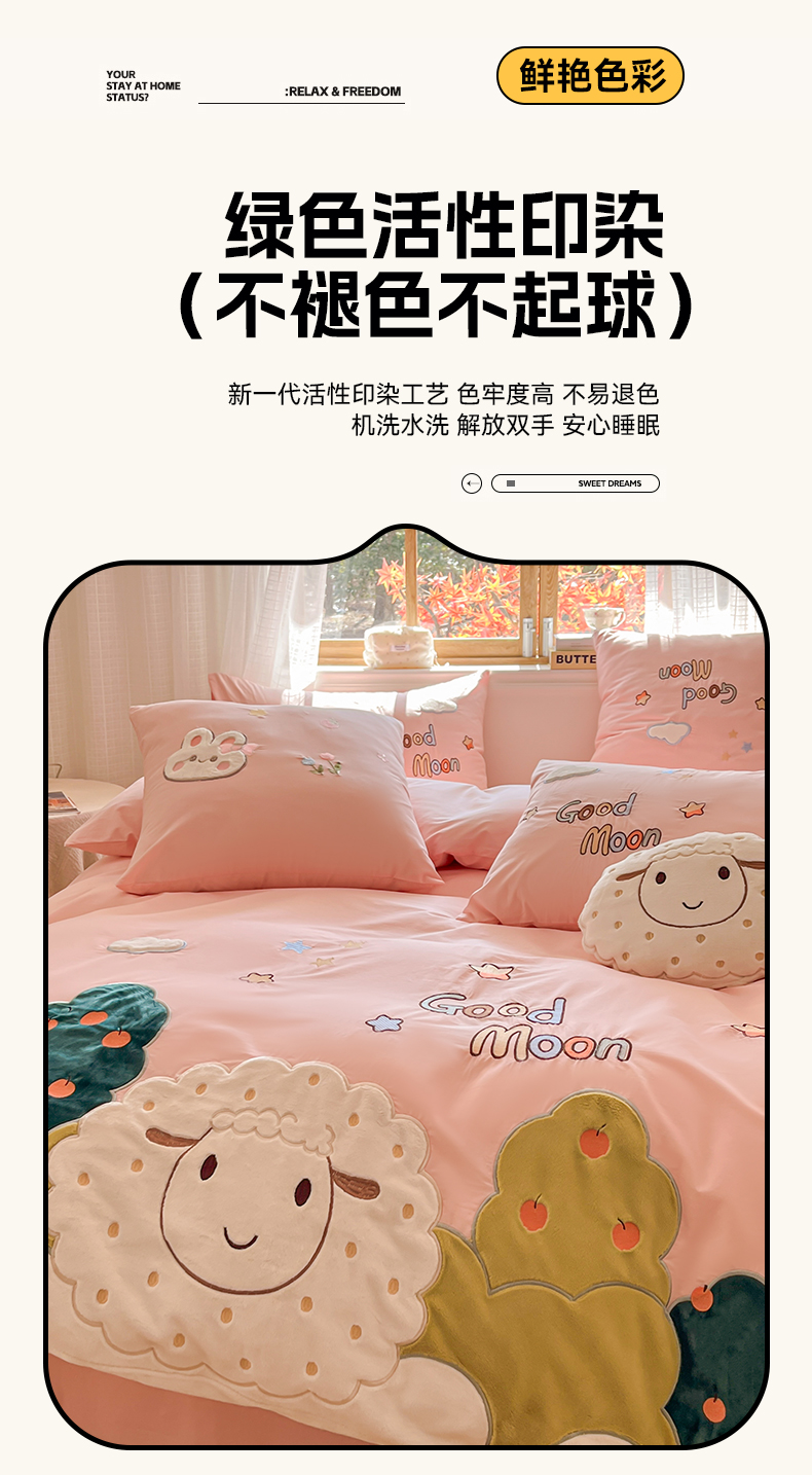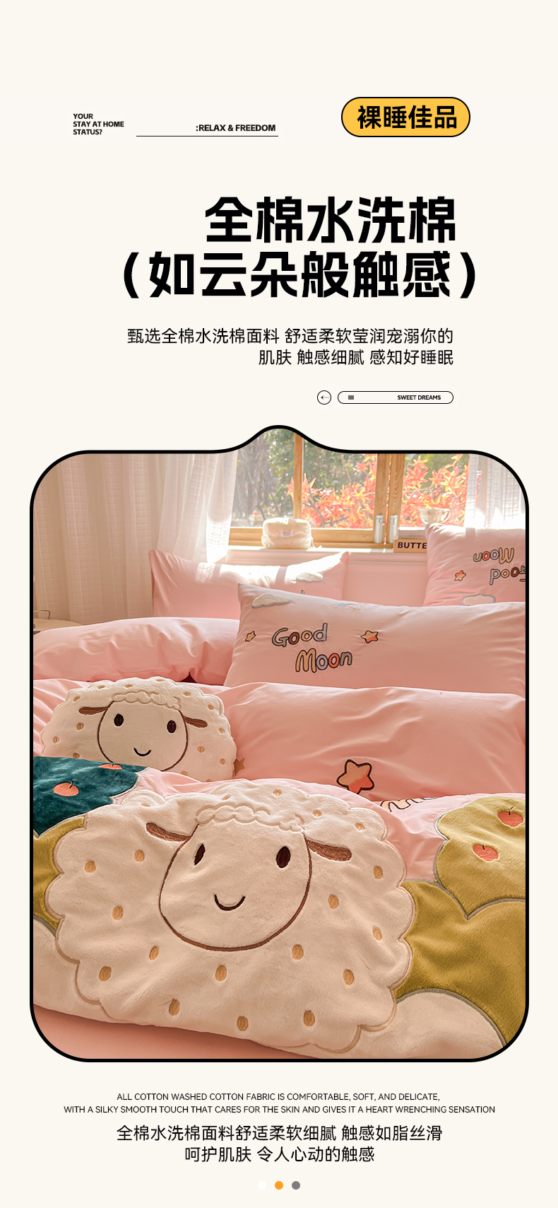 当前位置: 91家纺网 > 商品网购 > 床品套件 > 四件套 > 全棉普通四件套 > 恋绒2025新款亲肤全棉水洗棉纯棉贴布绣立体刺绣四件套系列—暗合款(提供买家秀)(送同款抱枕) 羊咩咩-粉
