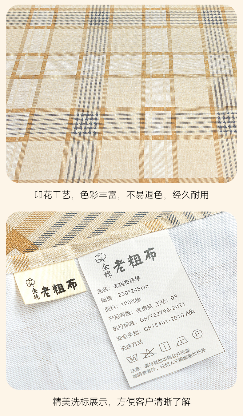 商品名称:(总)九亭家纺 2025新款A类全棉老粗布床单