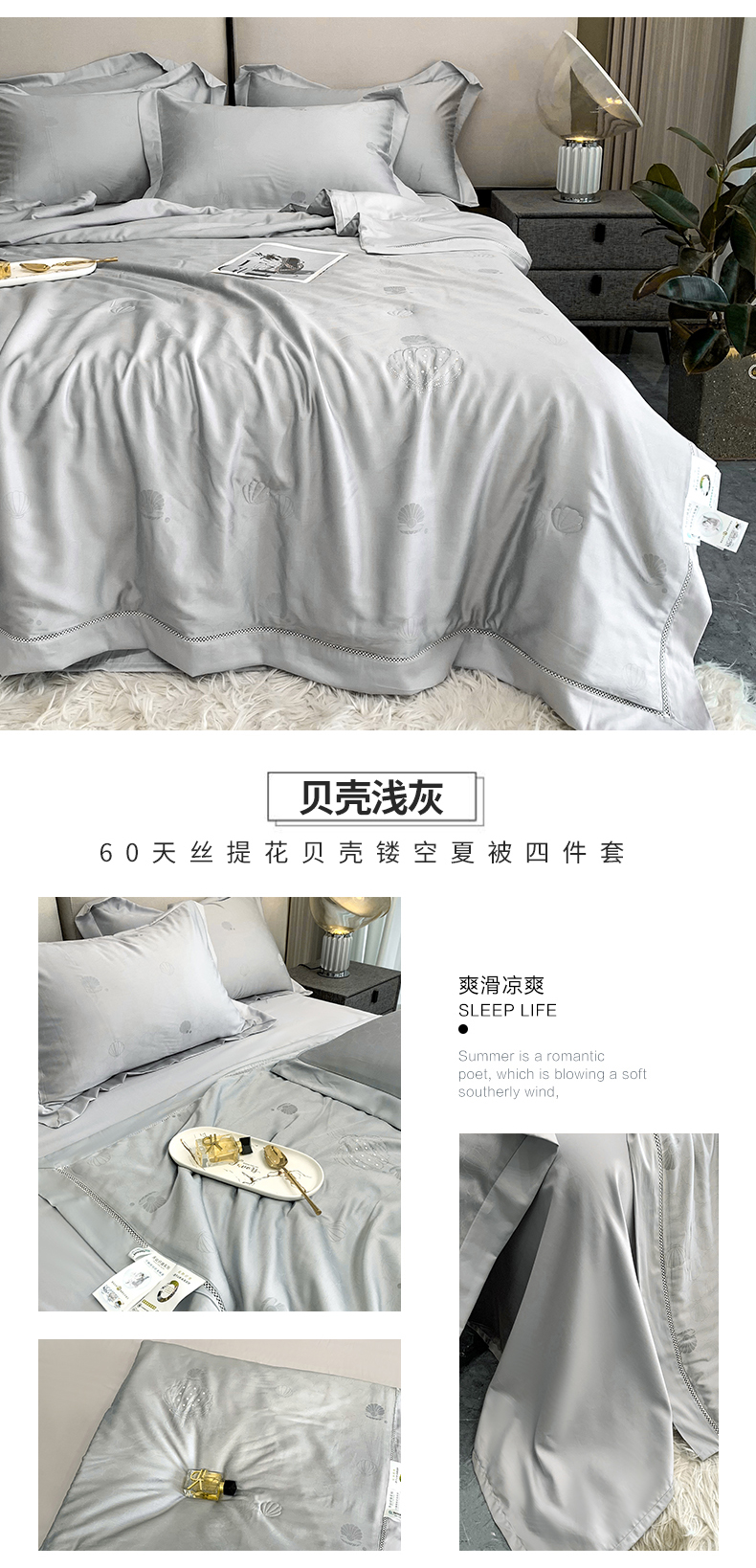 商品名称:娇逸家居 2025新款60支提花贝壳网红烫钻高端豪华夏被四件套 灰色