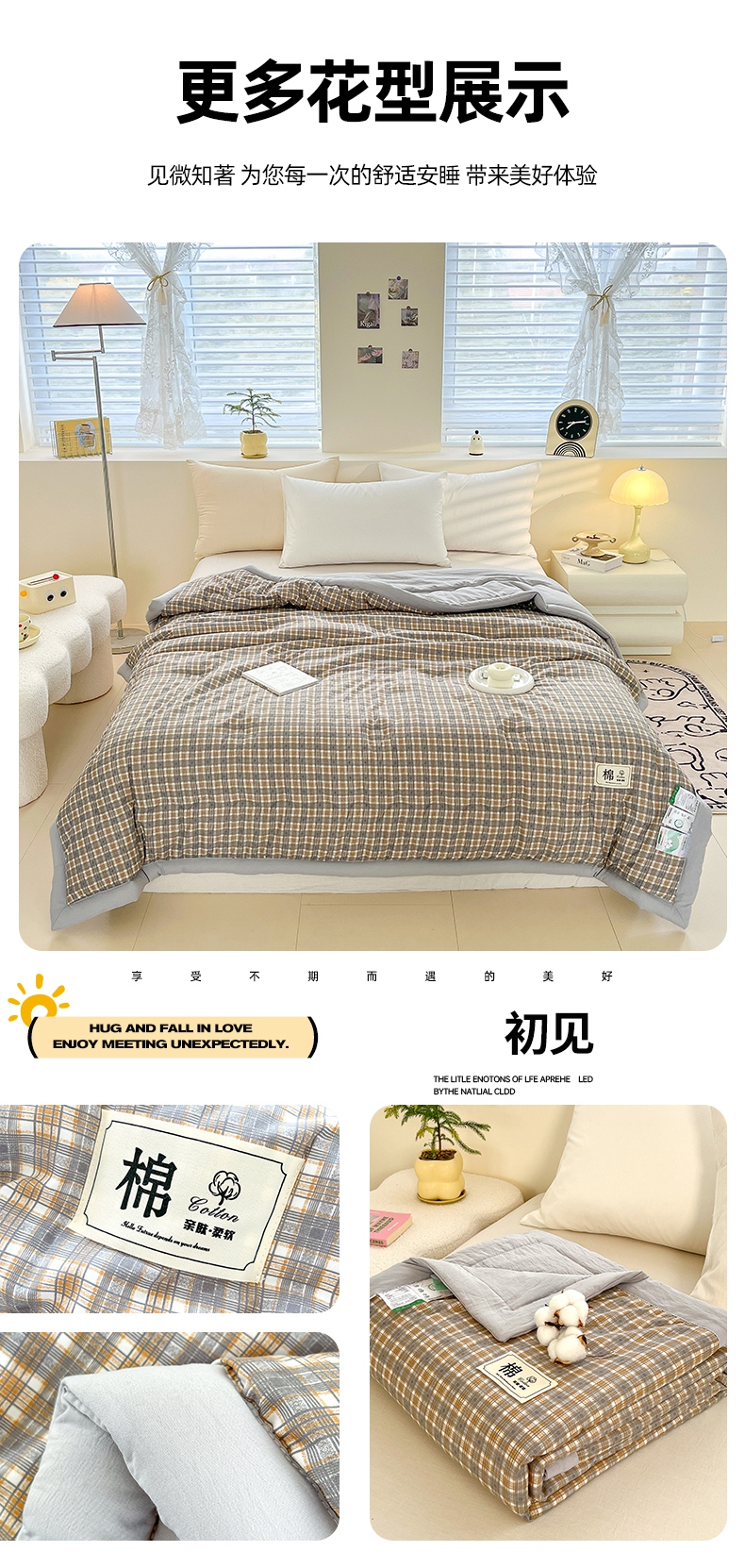 商品名称:爱宝被业 2025新款A类无印风针织棉新疆棉花夏被 密语