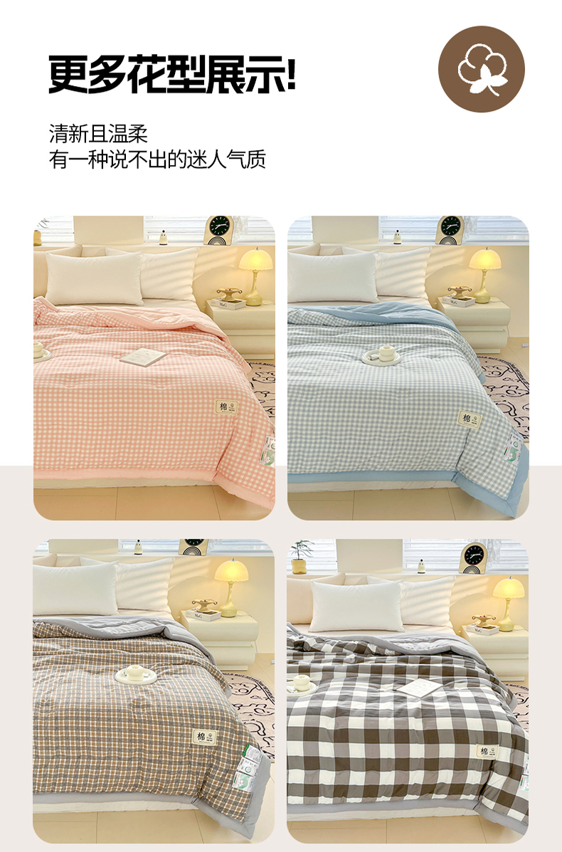 (总)爱宝被业 2025新款水洗针织棉无染被夏被被芯直播爆款,白色,粉色,绿色,浅灰