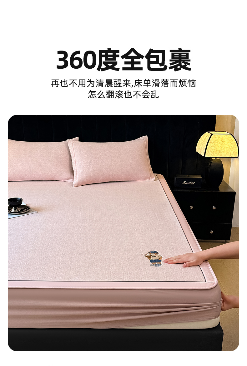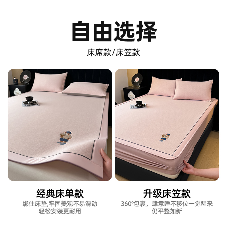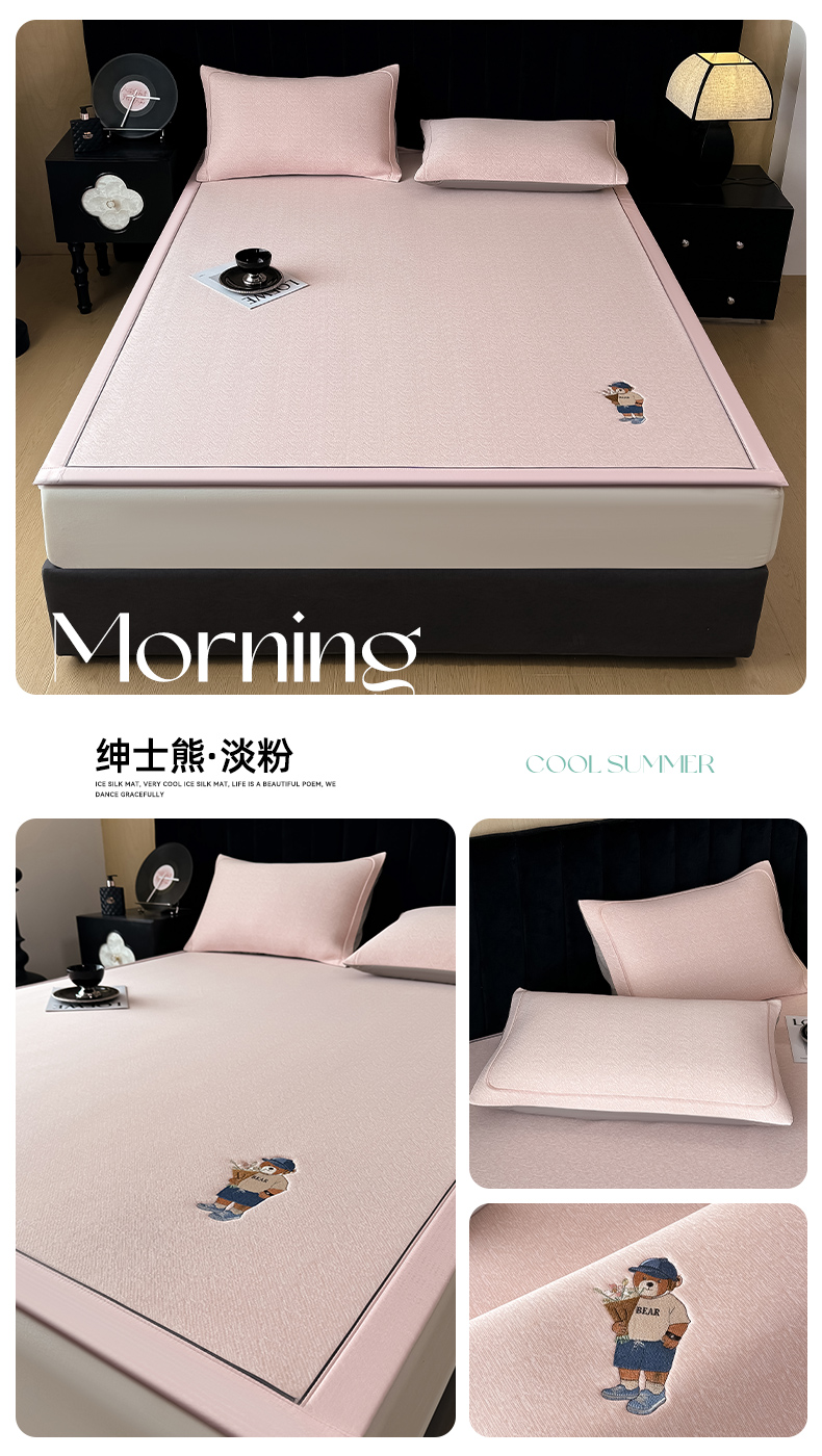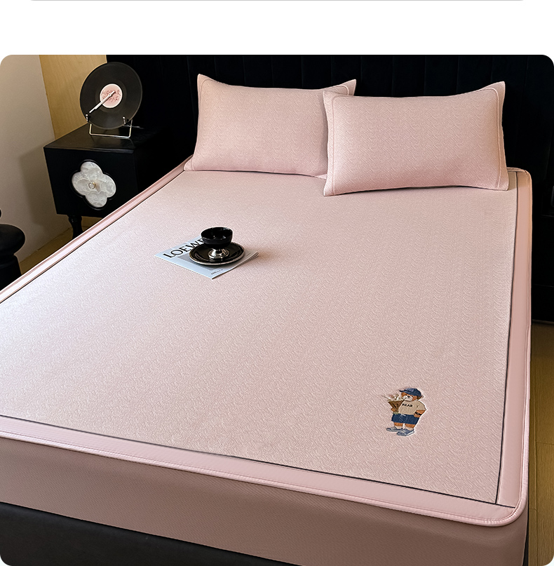 商品名称:全季家居 2025新款5A乙纶全PE绅士熊系列凉感软凉席席子 淡粉 床笠