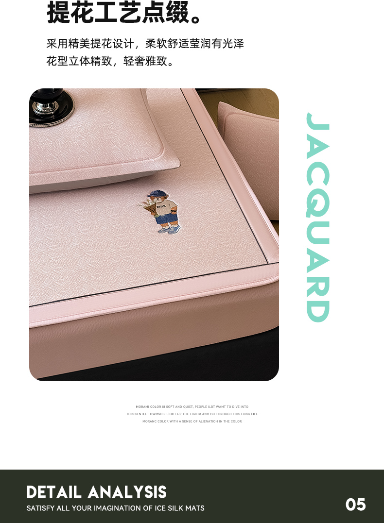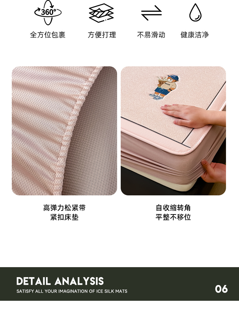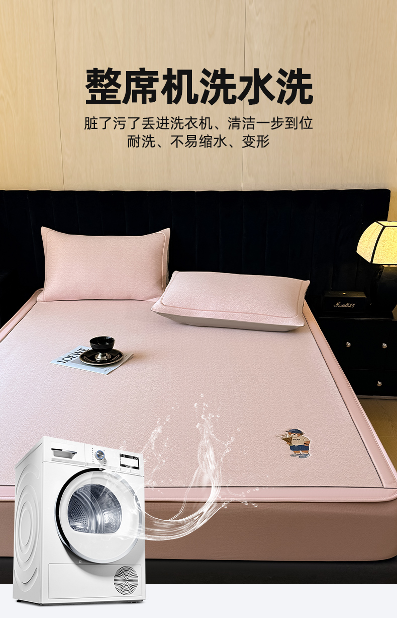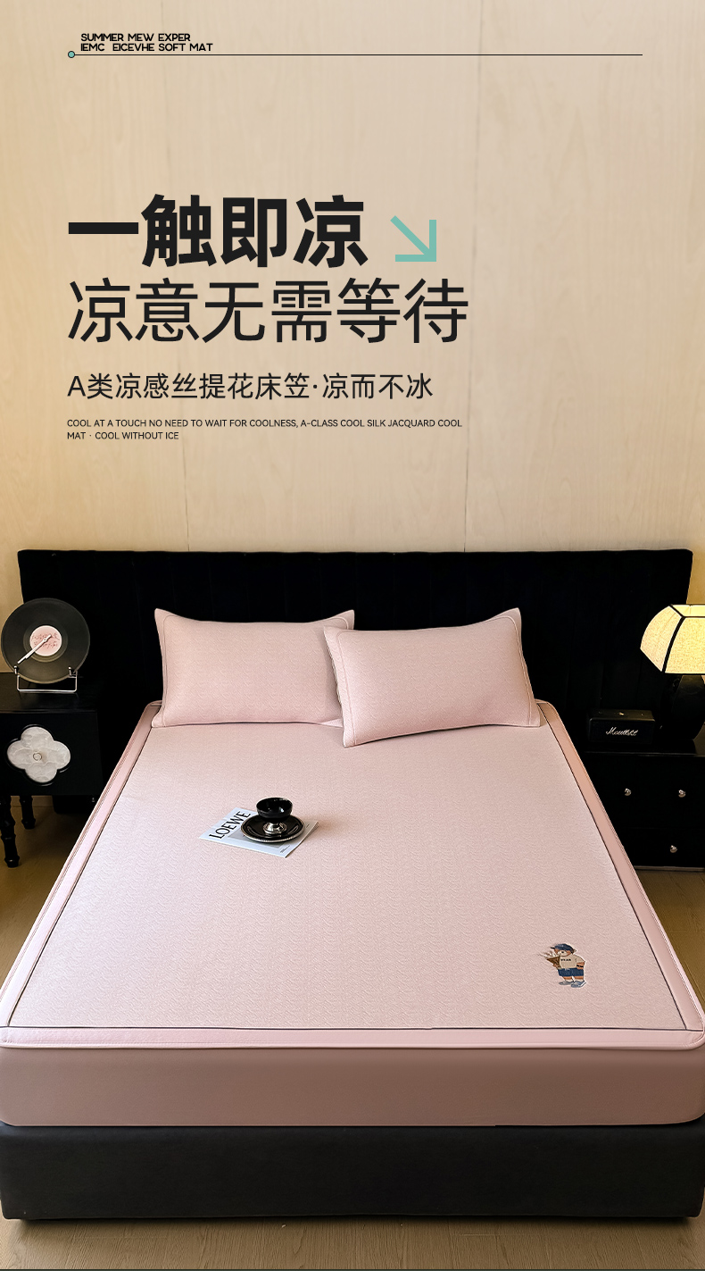 商品名称:全季家居 2025新款5A乙纶全PE绅士熊系列凉感软凉席席子 淡粉 床笠