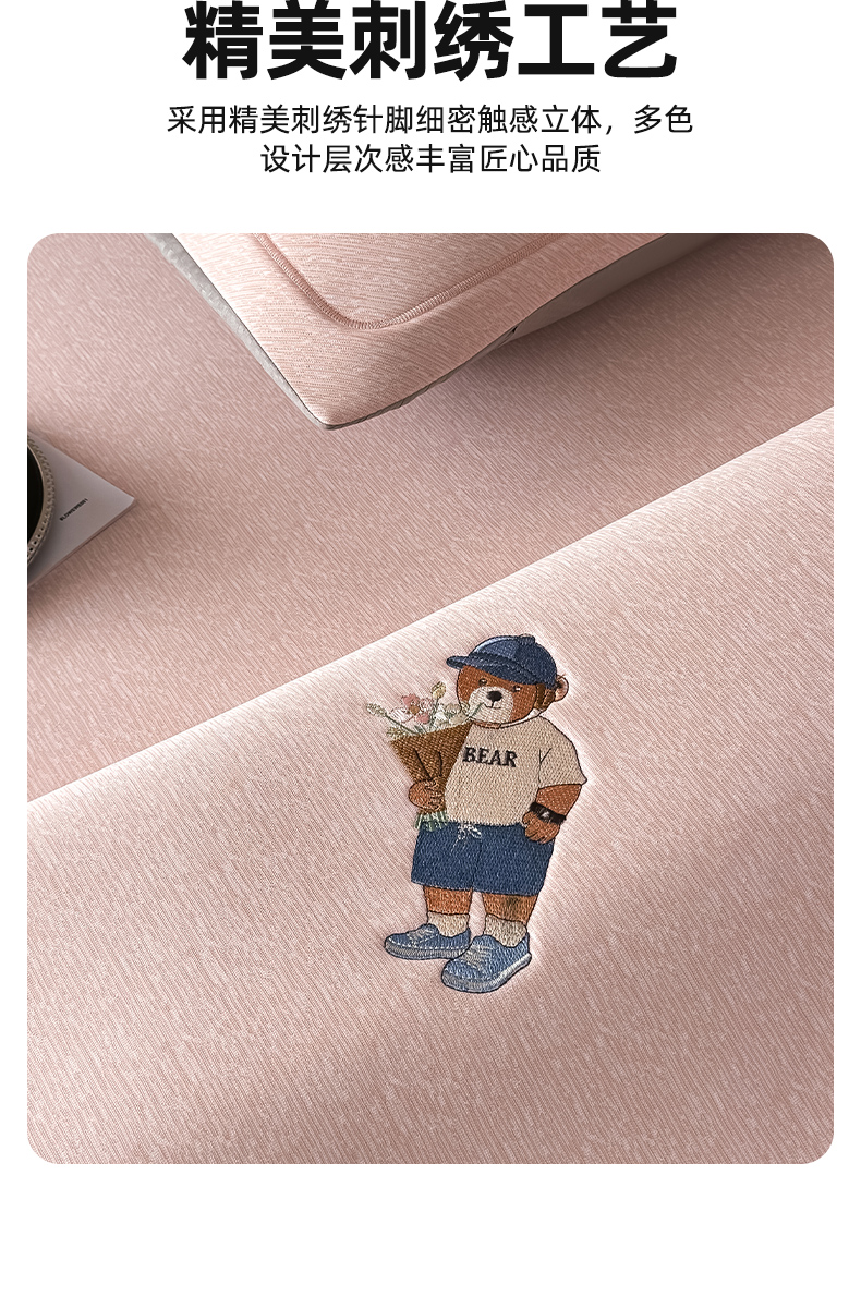 全季家居 2025新款5A乙纶全PE绅士熊系列凉感软凉席席子 淡粉 床笠