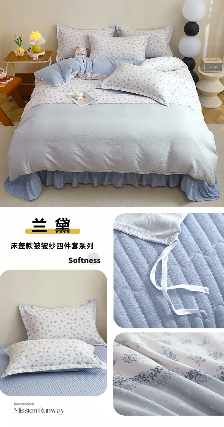 仟网汇 2025新款亲肤皱皱棉四件套皱皱纱四件套 兰黛