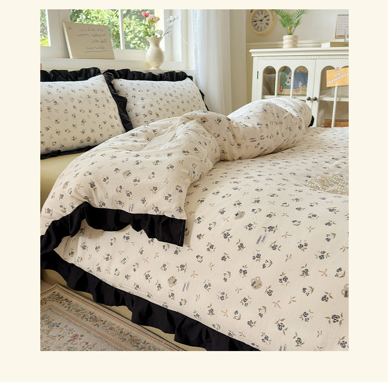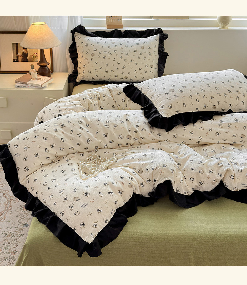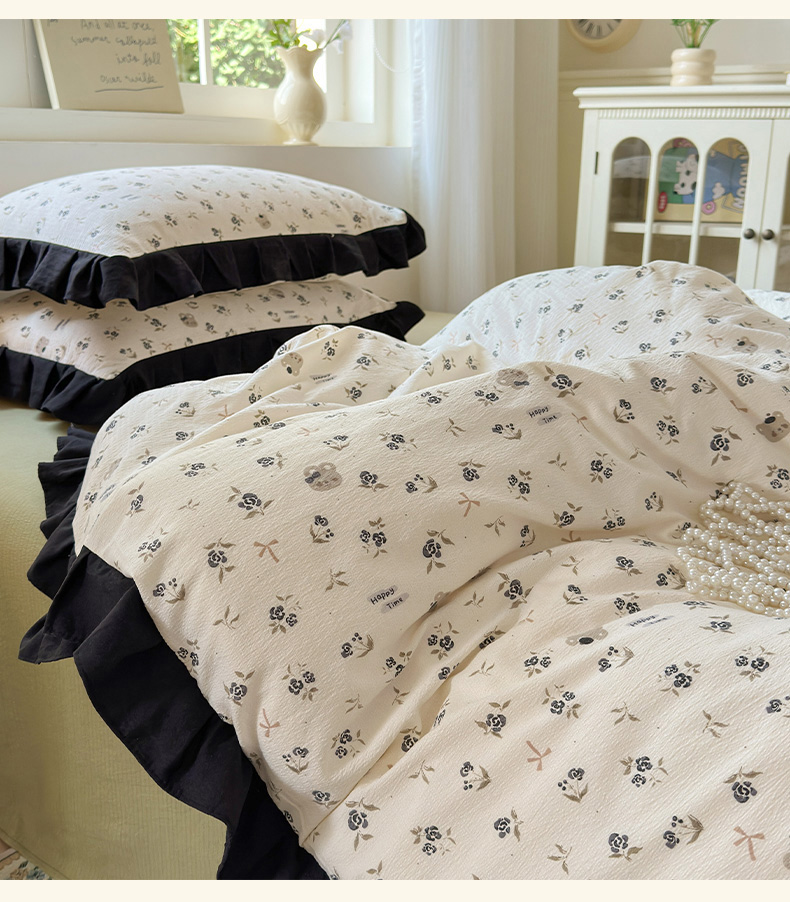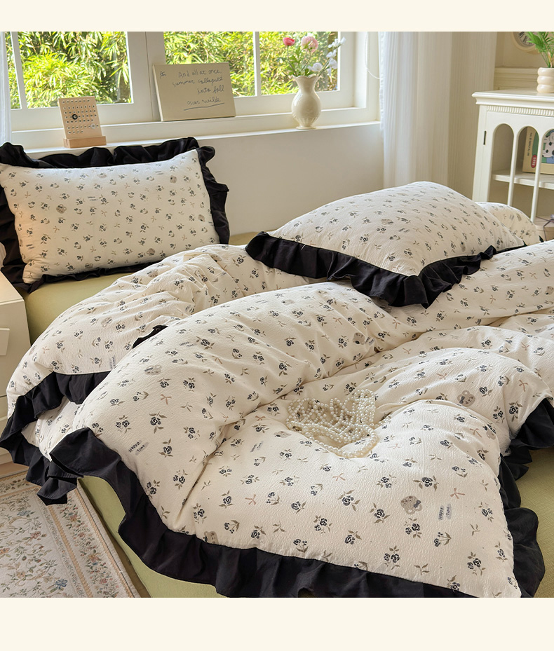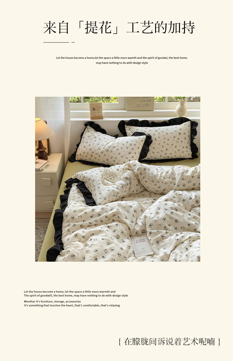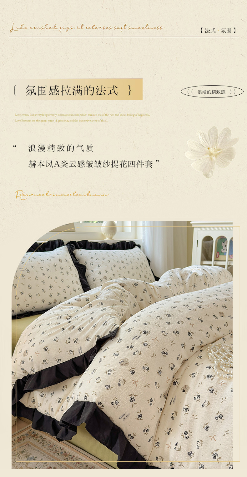 当前位置: 91家纺网 > 商品网购 > 床品套件 > 四件套 > 其它四件套 > 喜颜 2025新款云感提花皱皱棉爆款花边四件套-赫本风 花丛小熊