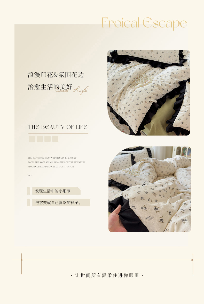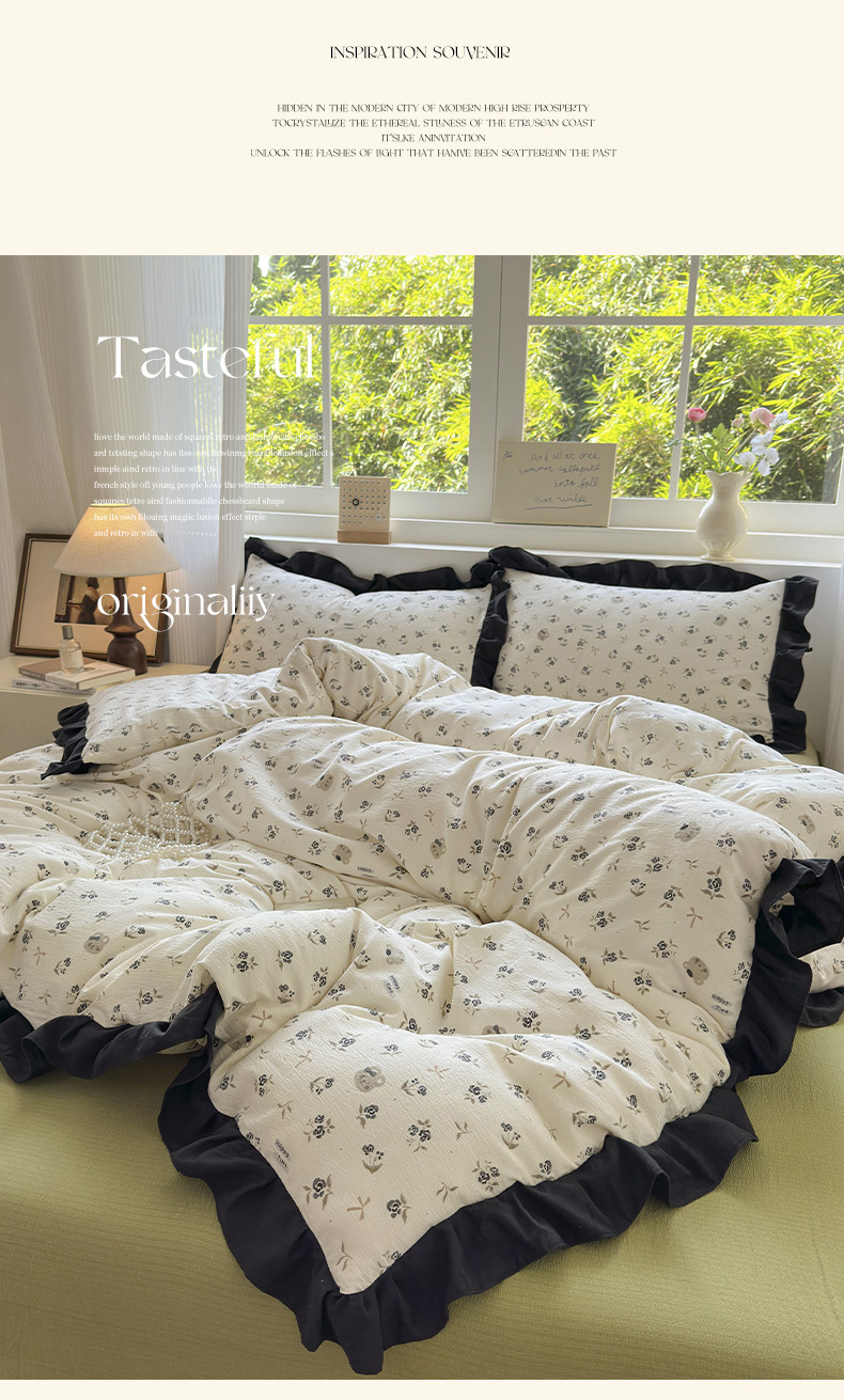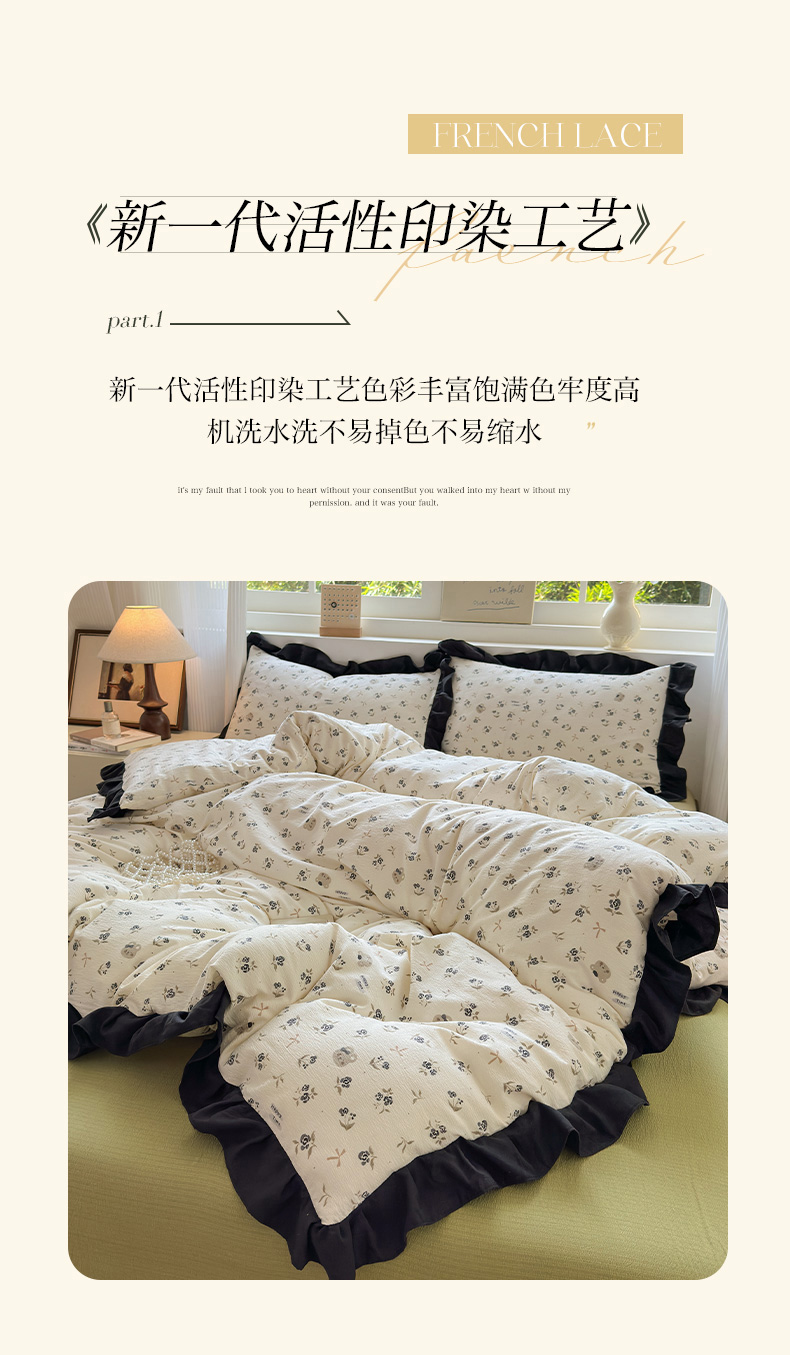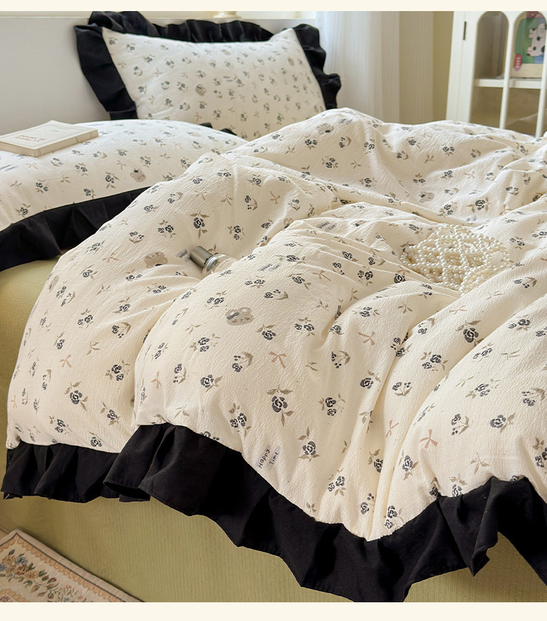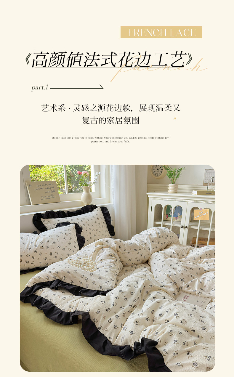 当前位置: 91家纺网 > 商品网购 > 床品套件 > 四件套 > 其它四件套 > 喜颜 2025新款云感提花皱皱棉爆款花边四件套-赫本风 花丛小熊