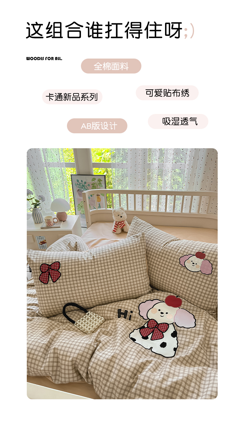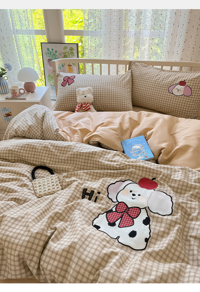 当前位置: 91家纺网 > 商品网购 > 床品套件 > 四件套 > 全棉普通四件套 > 乐美家纺 2025新款亲肤舒适全棉纯棉贴布绣卡通系列四件套 斑点狗