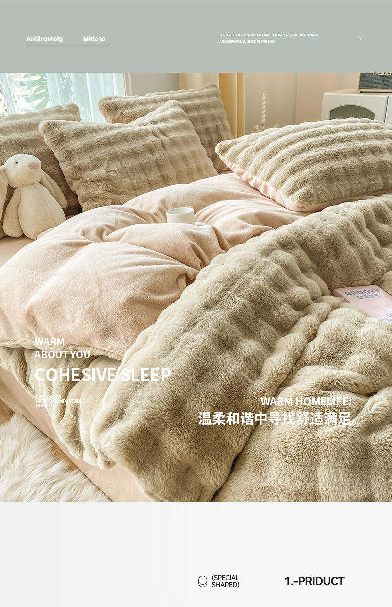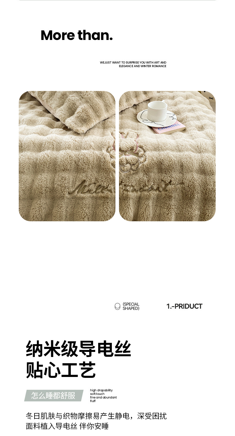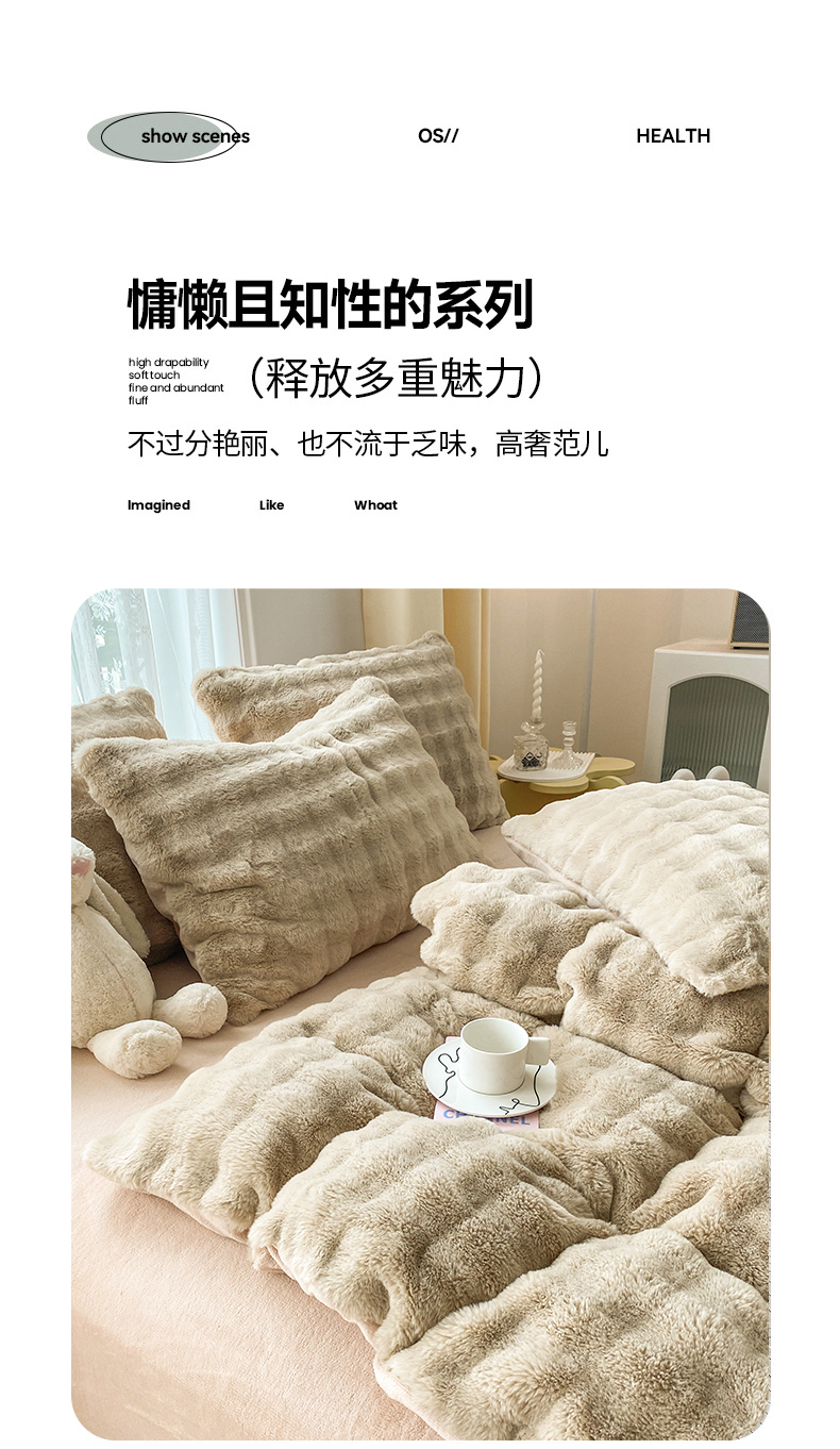 当前位置: 91家纺网 > 商品网购 > 床品套件 > 四件套 > 其它四件套 > 潮邦创意家居 2025新款小米兔泡泡兔绒保暖四件套 米兔卡其