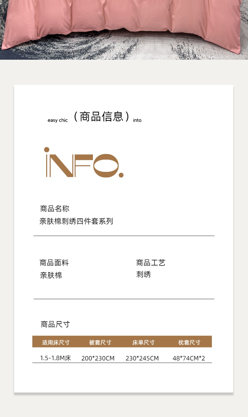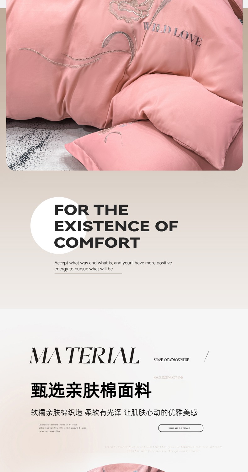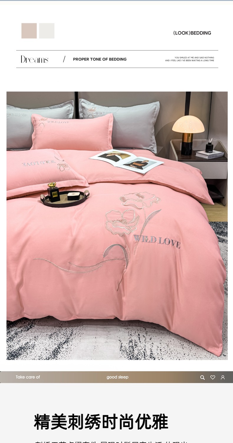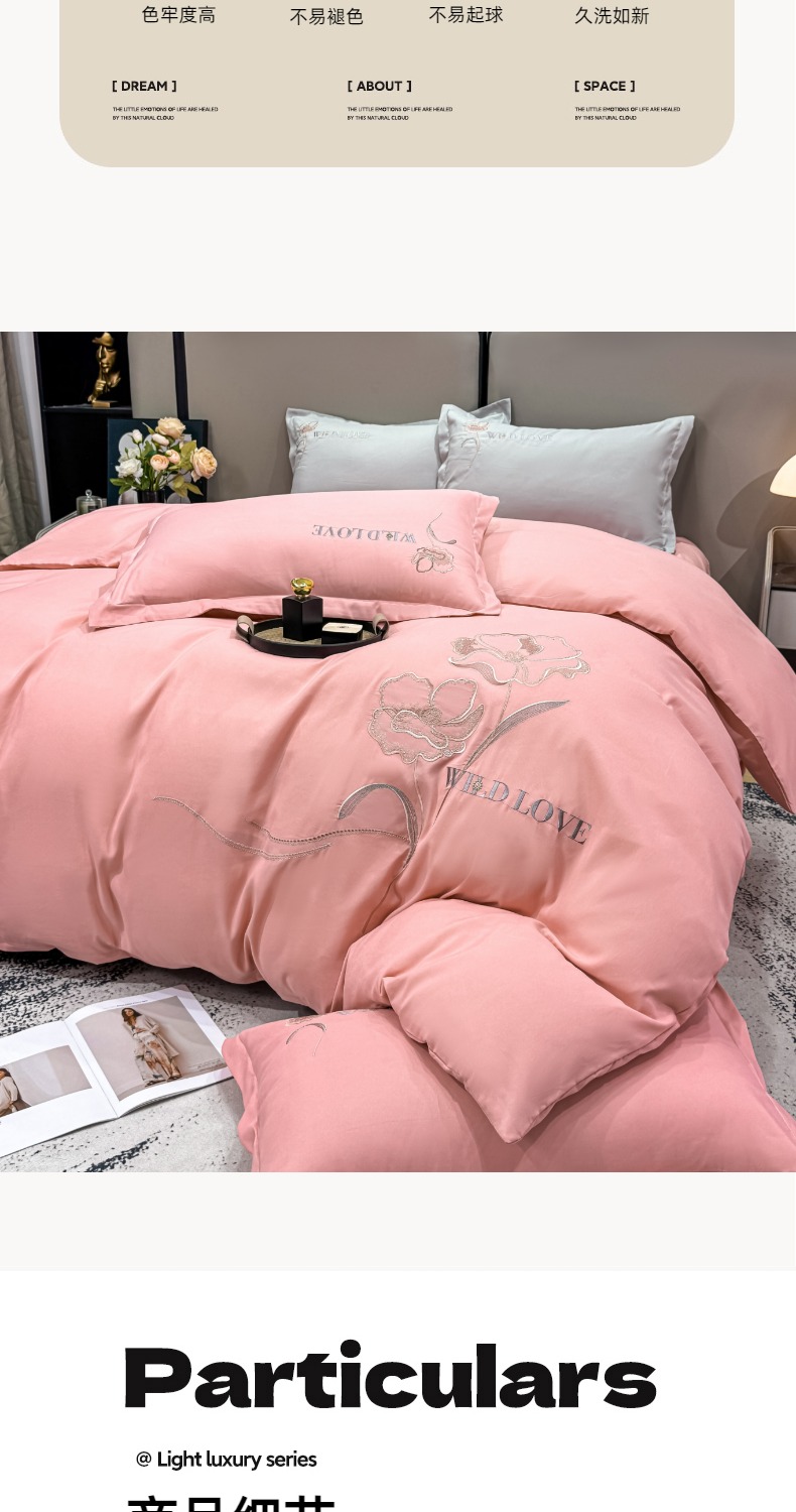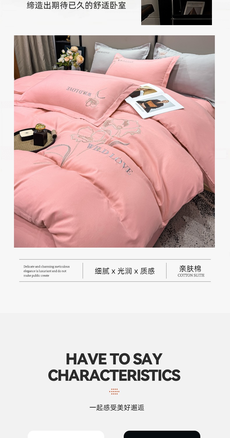 商品名称:悦织湾家纺 90克磨毛刺绣纯色四件套2025新款轻奢韩版公主风精致床上用品绣花亲肤水洗棉4件套 诗诺-玉色