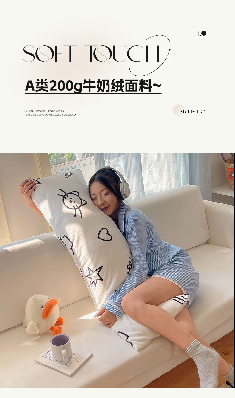 商品名称:六巷胡同 2025新款INS博主可爱风A类200g牛奶绒长条大抱枕 抱枕-可爱涂鸦集