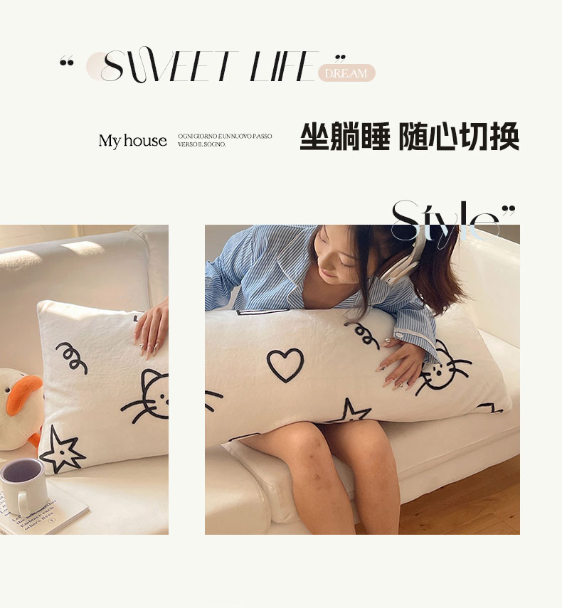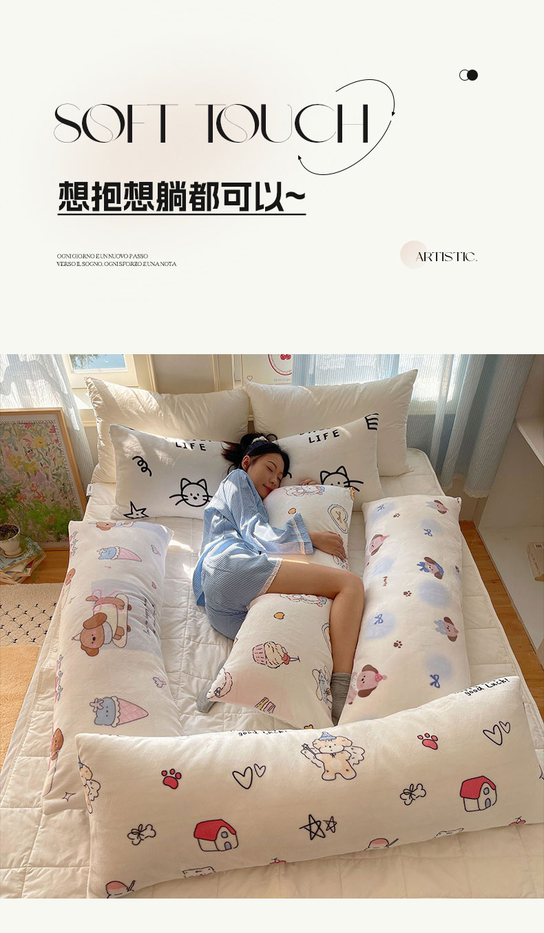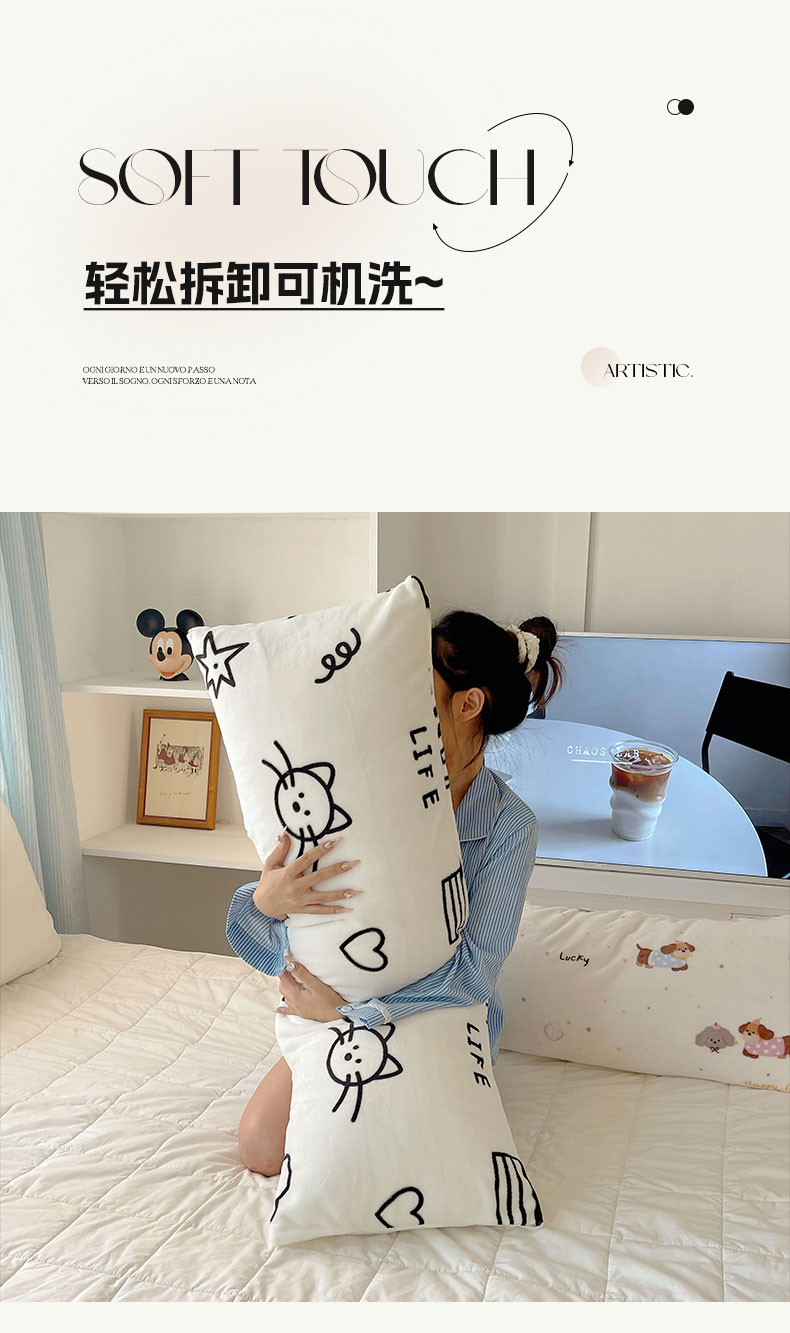 六巷胡同 2025新款INS博主可爱风A类200g牛奶绒长条大抱枕 抱枕-可爱涂鸦集