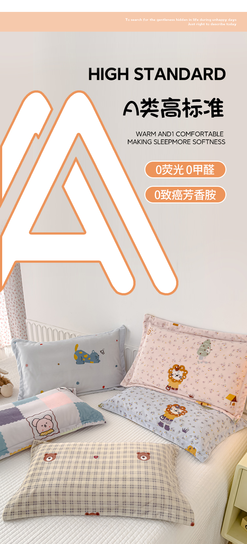 (总)良佐生活 2023新款A类60支全棉贡缎乳胶枕枕套儿童橡胶枕头套高低,口袋熊,恐龙宝宝,开心熊 粉,冰淇淋,恐龙乐园,花仙兔,贝塔 粉,挖掘车