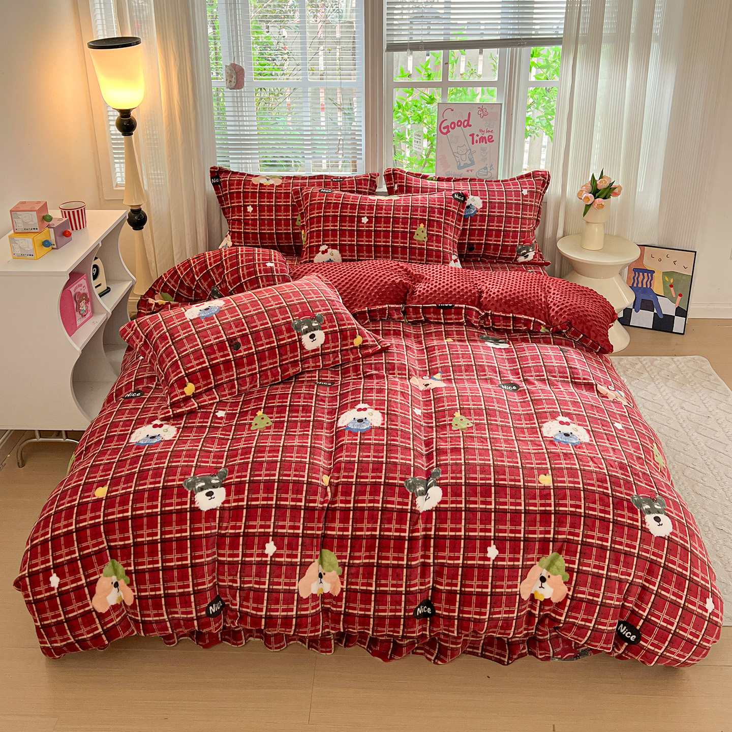 仟网汇 2025新款牛奶绒豆豆绒床盖四件套 格韵