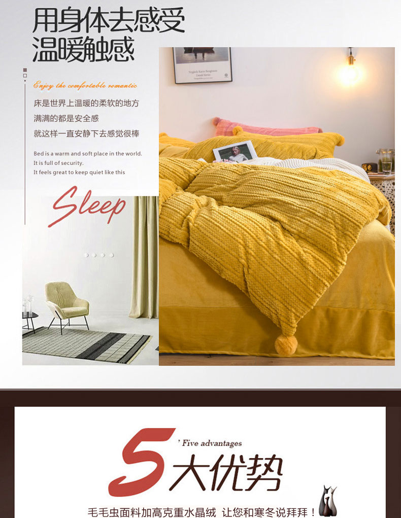 商品名称:仟网汇 2025新款热款剪花绒毛毛球绒水晶绒四件套 粉色