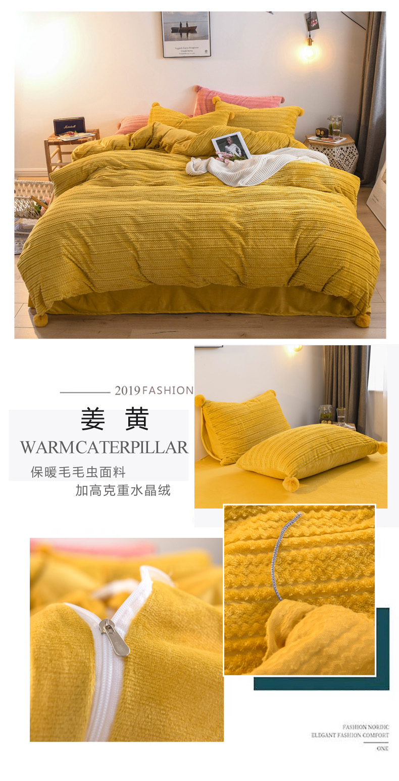 (总)仟网汇 2025新款热款剪花绒毛毛球绒水晶绒四件套,粉色