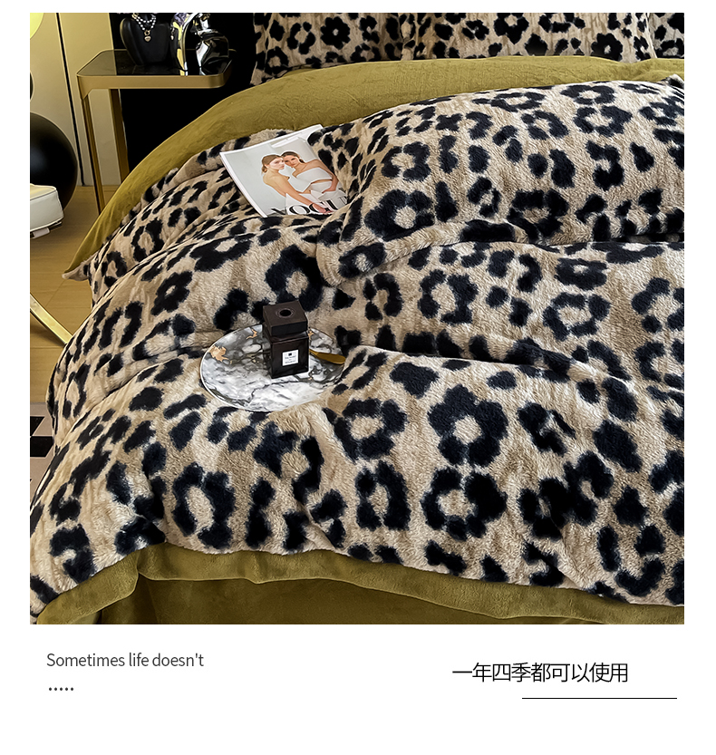 (总)仟网汇 2025新款加厚保暖兔绒四件套-豹纹系列,豹纹-粉,豹纹-灰,豹纹-咖,豹纹-绿,豹纹-紫