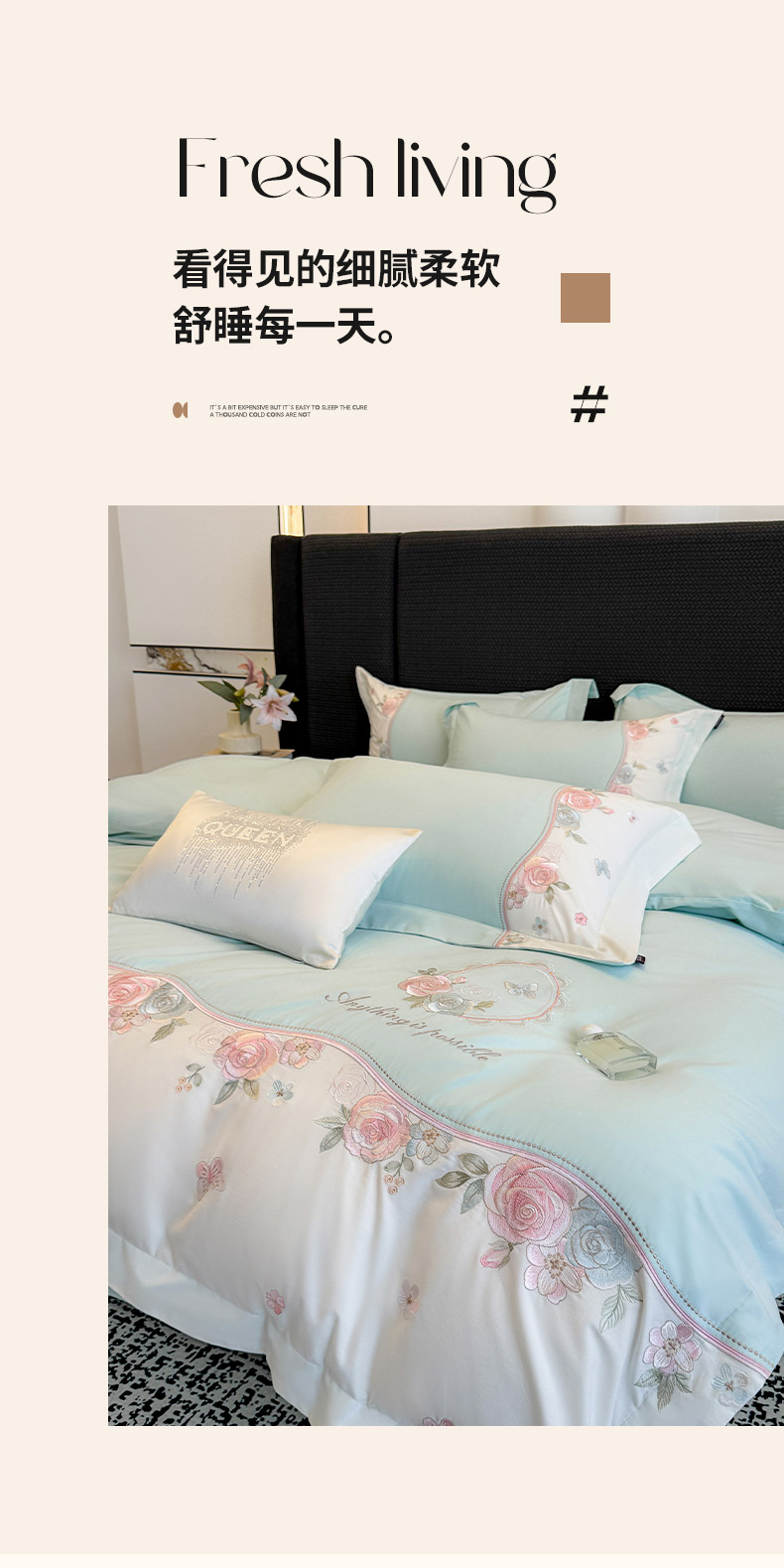 当前位置: 91家纺网 > 商品网购 > 床品套件 > 四件套 > 其它四件套 > 爱妮菲家纺 2025新款直播爆款A类加厚保暖全棉纯棉磨毛四件套纯棉重工刺绣被套冬季床上用品 绮影-冰清绿