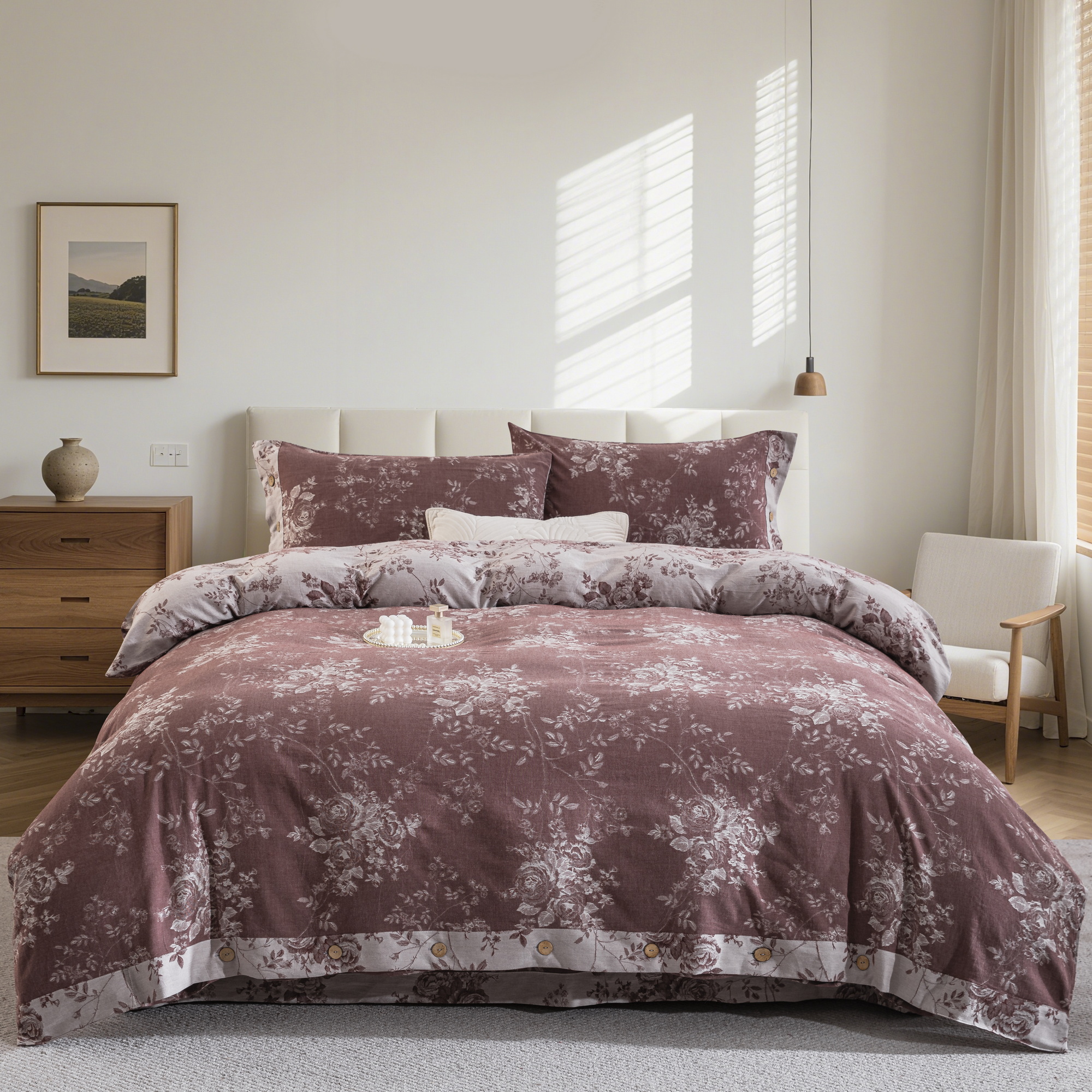 (总)双层纱家居 2025新款纯棉双层纱纽扣款四件套,春雨墨绿,凤尾花,黑茶,红石榴,蝴蝶粉,蝴蝶紫,花絮黄,花絮蓝,流金岁月粉灰,流金岁月紫,陌上花开深蓝,牡丹深紫,牡丹夕颜紫红,秋雨墨绿,亭亭玉立,雾里看花墨蓝,新款薰衣草,新龙凤呈祥,一帆风顺灰,羽毛桔,织梦粉,织梦水墨,织梦紫罗兰