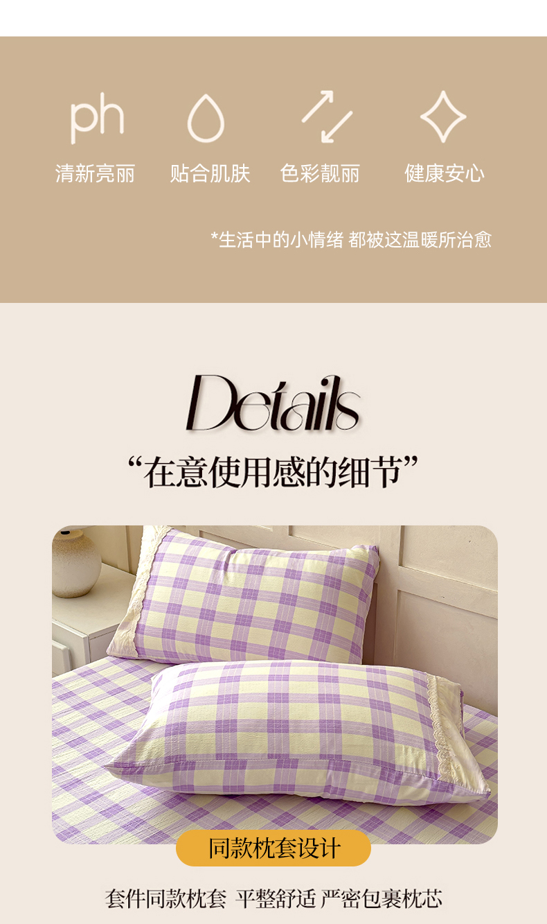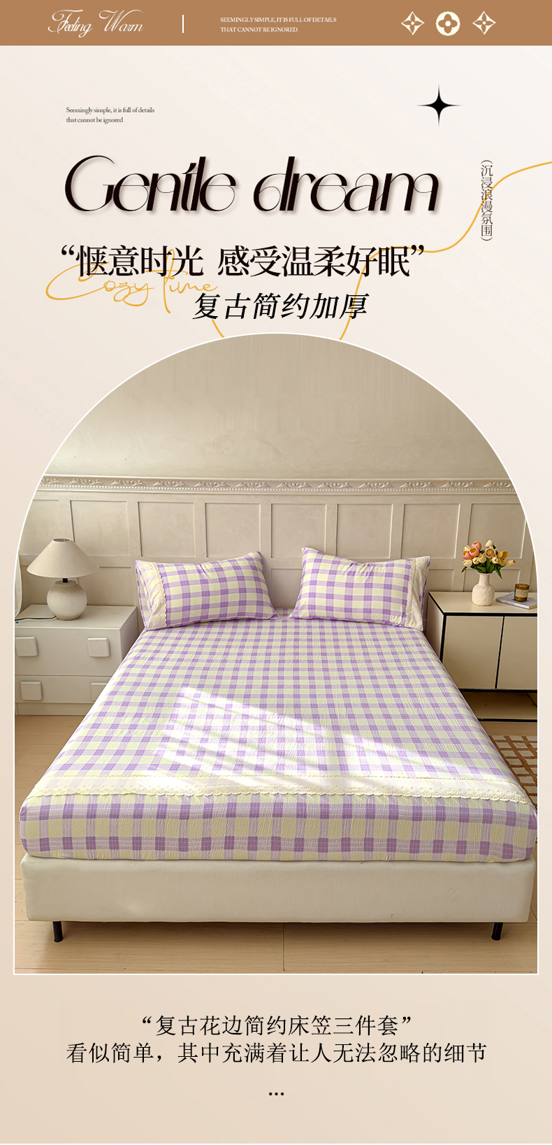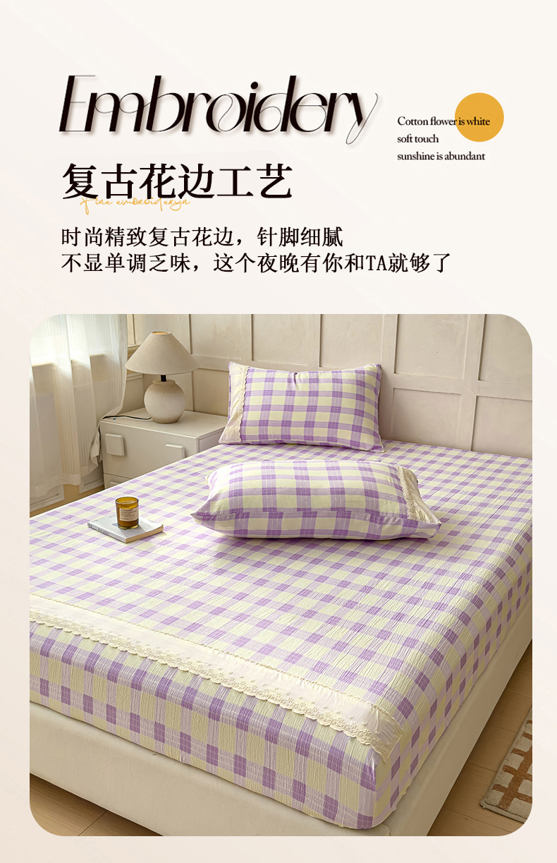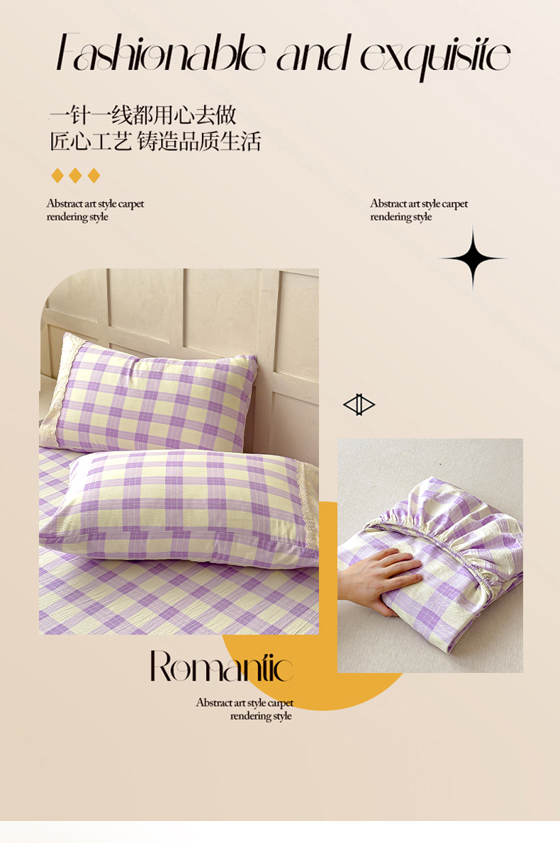 当前位置: 91家纺网 > 商品网购 > 床品套件 > 三件套 > 富阿娜家纺 2026年新款小布袋简约复古花边床笠三件套 浅紫奶酪