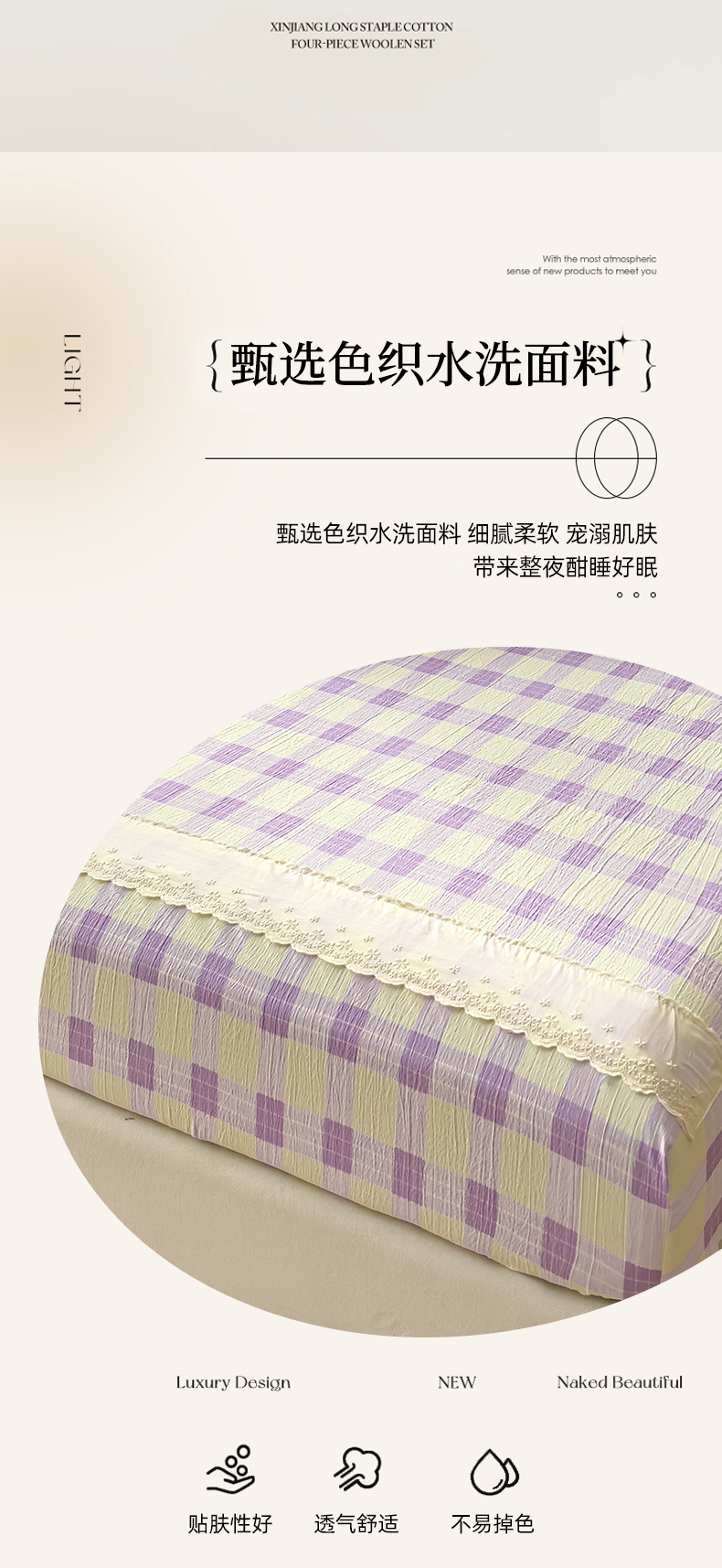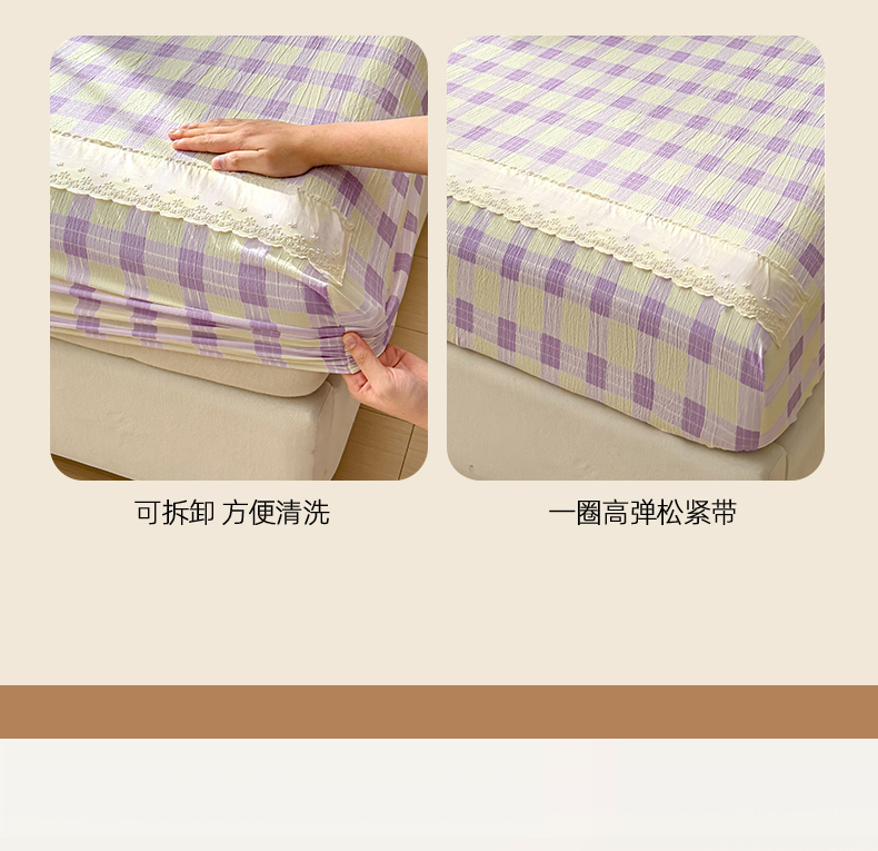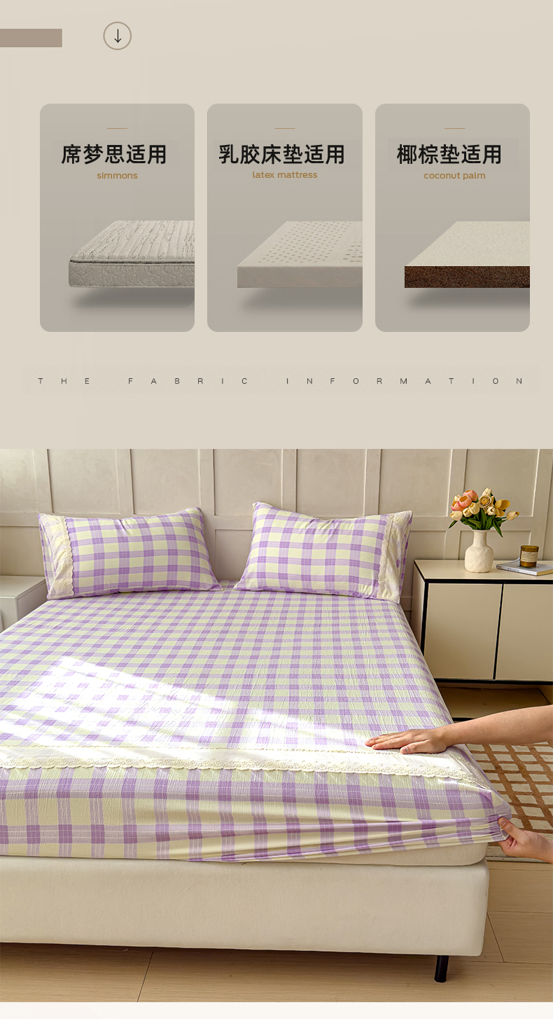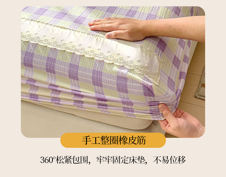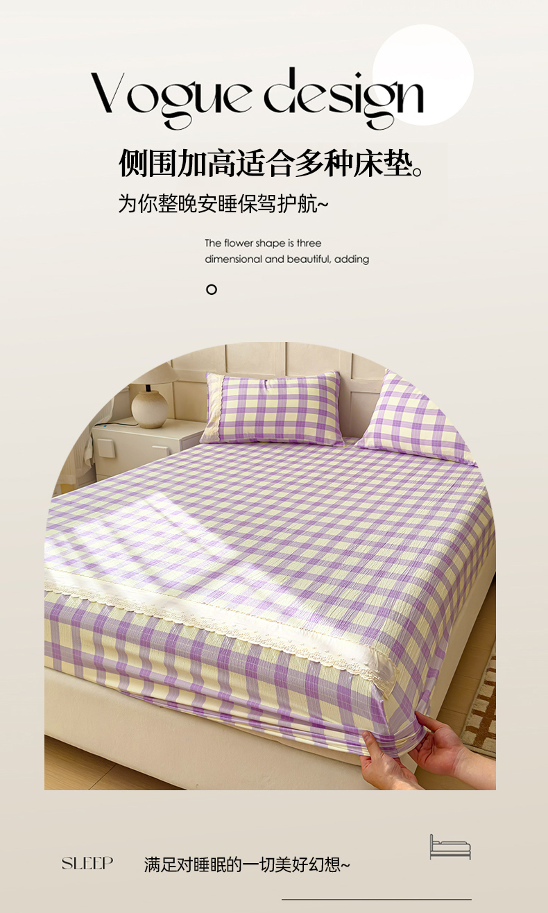 当前位置: 91家纺网 > 商品网购 > 床品套件 > 三件套 > 富阿娜家纺 2026年新款小布袋简约复古花边床笠三件套 浅紫奶酪