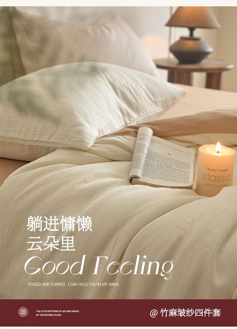 (总)麦空家居 2025新款无印风竹麻皱纱简约纯色四件套,奶昔白-卡其,果绿-卡其,奶油粉-山灰,香槟-卡其,珍珠灰-卡其,珍珠灰独版