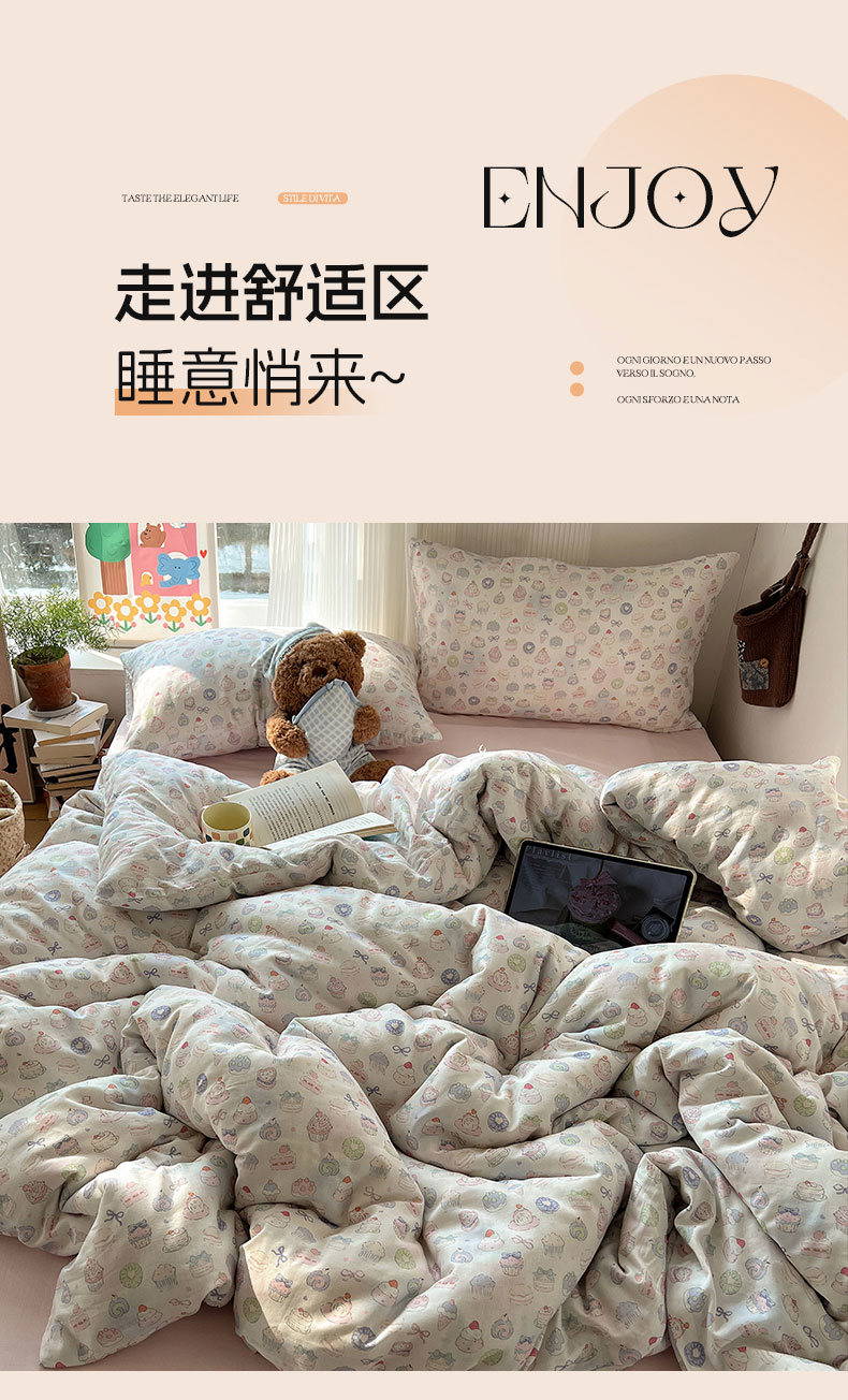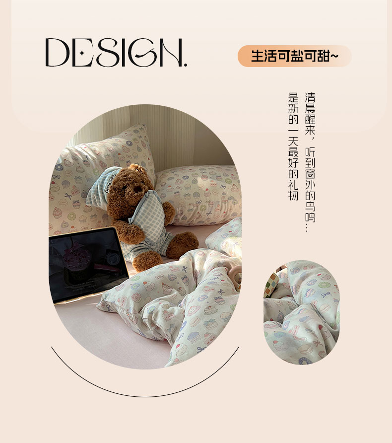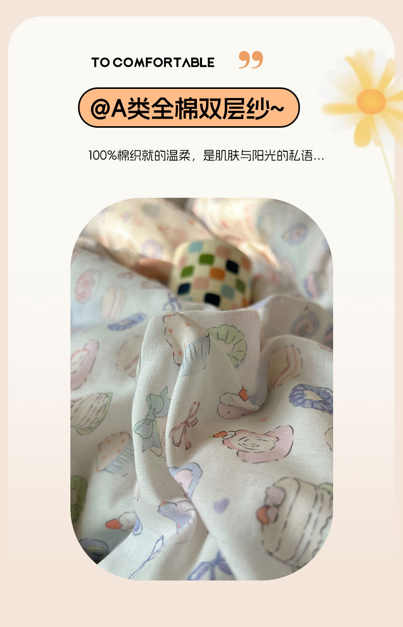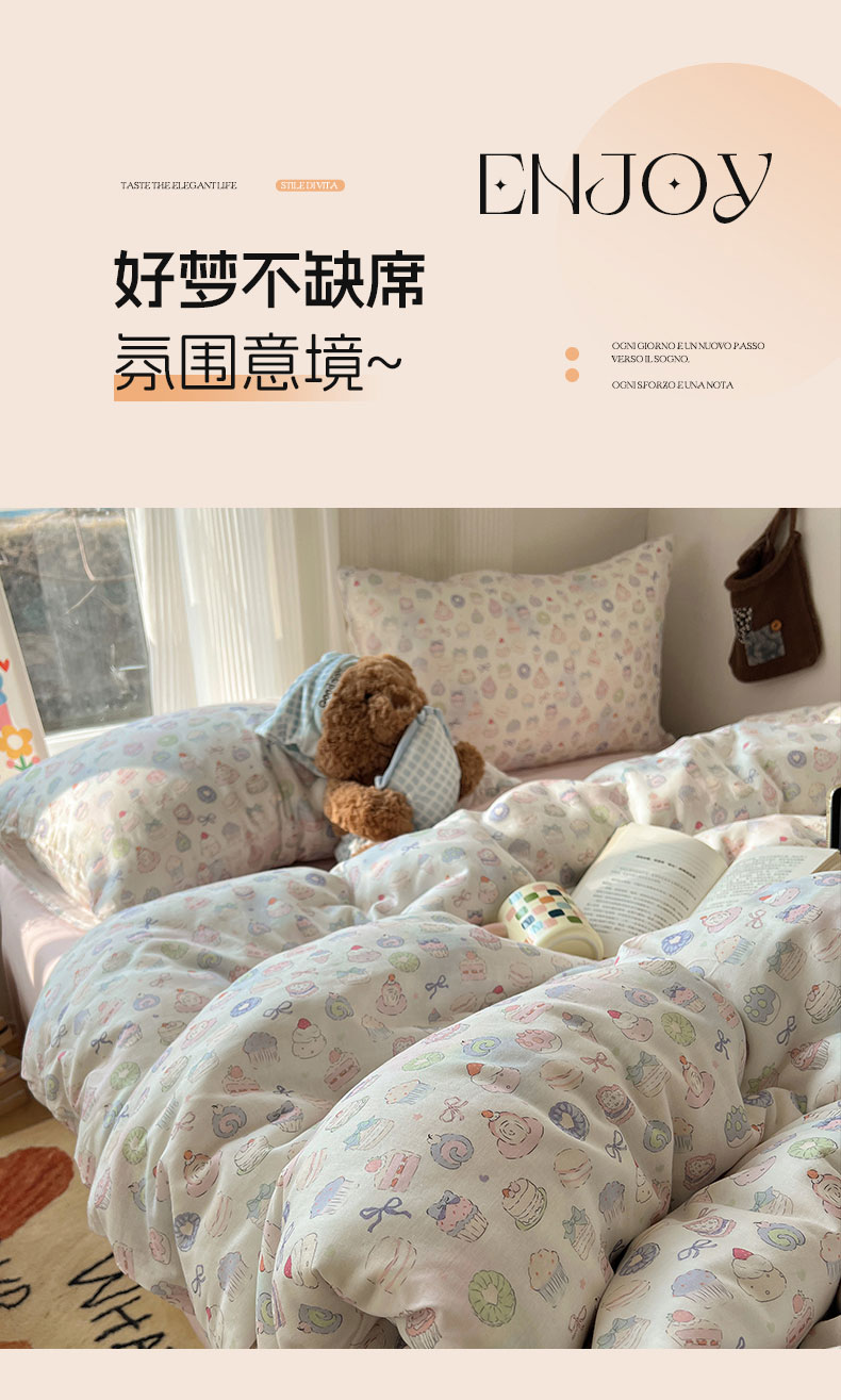 当前位置: 91家纺网 > 商品网购 > 床品套件 > 四件套 > 全棉普通四件套 > 六巷胡同 2026新款INS博主风卡通A类全棉双层纱四件套 双层纱-马卡龙蛋糕