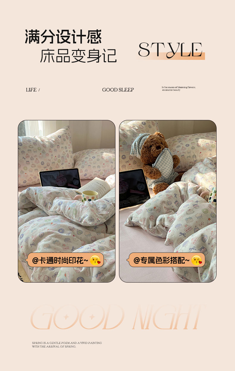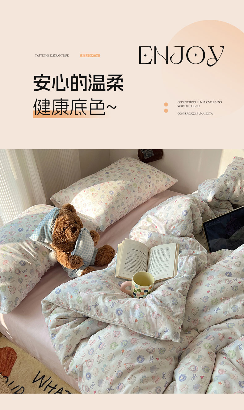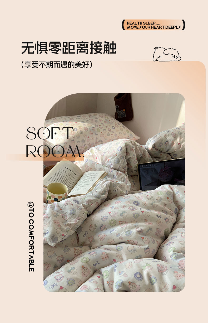 当前位置: 91家纺网 > 商品网购 > 床品套件 > 四件套 > 全棉普通四件套 > 六巷胡同 2026新款INS博主风卡通A类全棉双层纱四件套 双层纱-马卡龙蛋糕