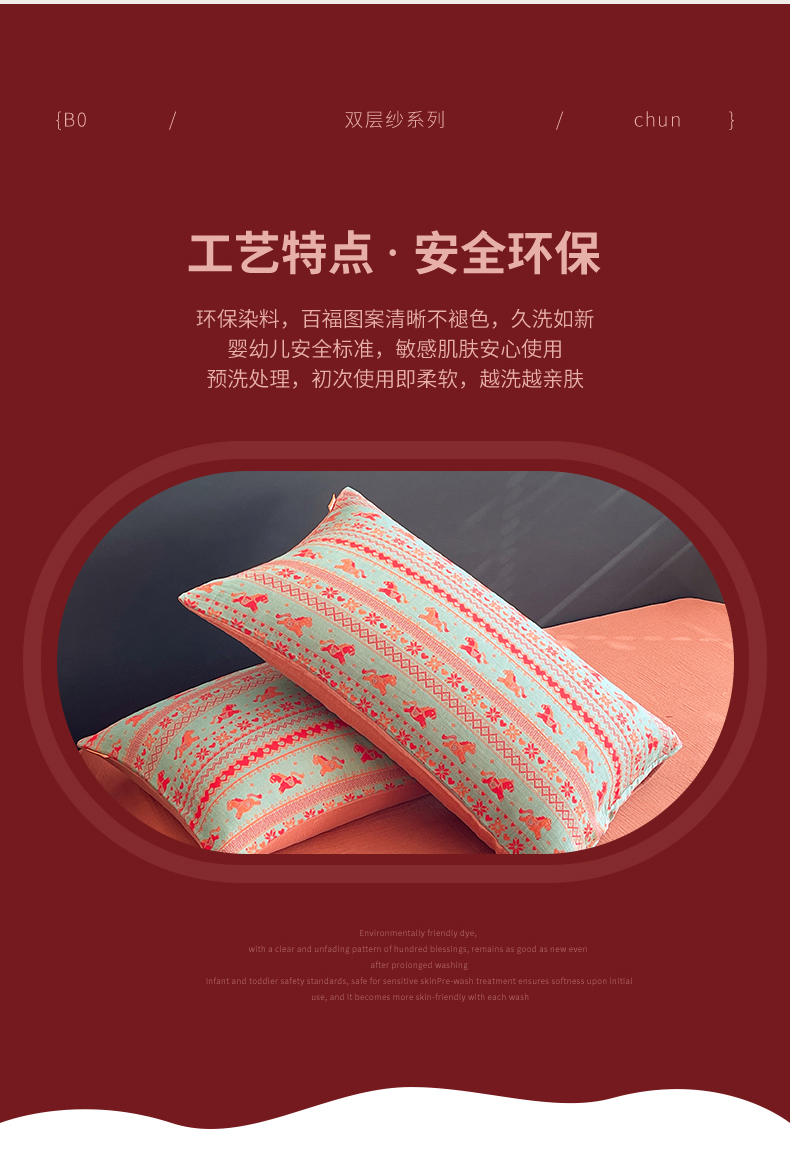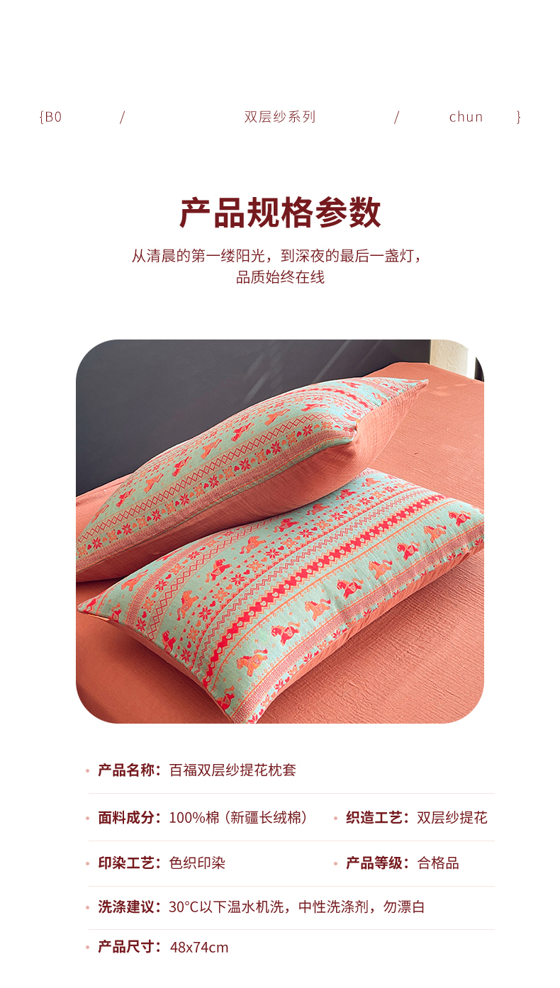 春皖家纺 2026新款全棉色织双层纱提花百福系列拉链款-单枕套 绿绝影