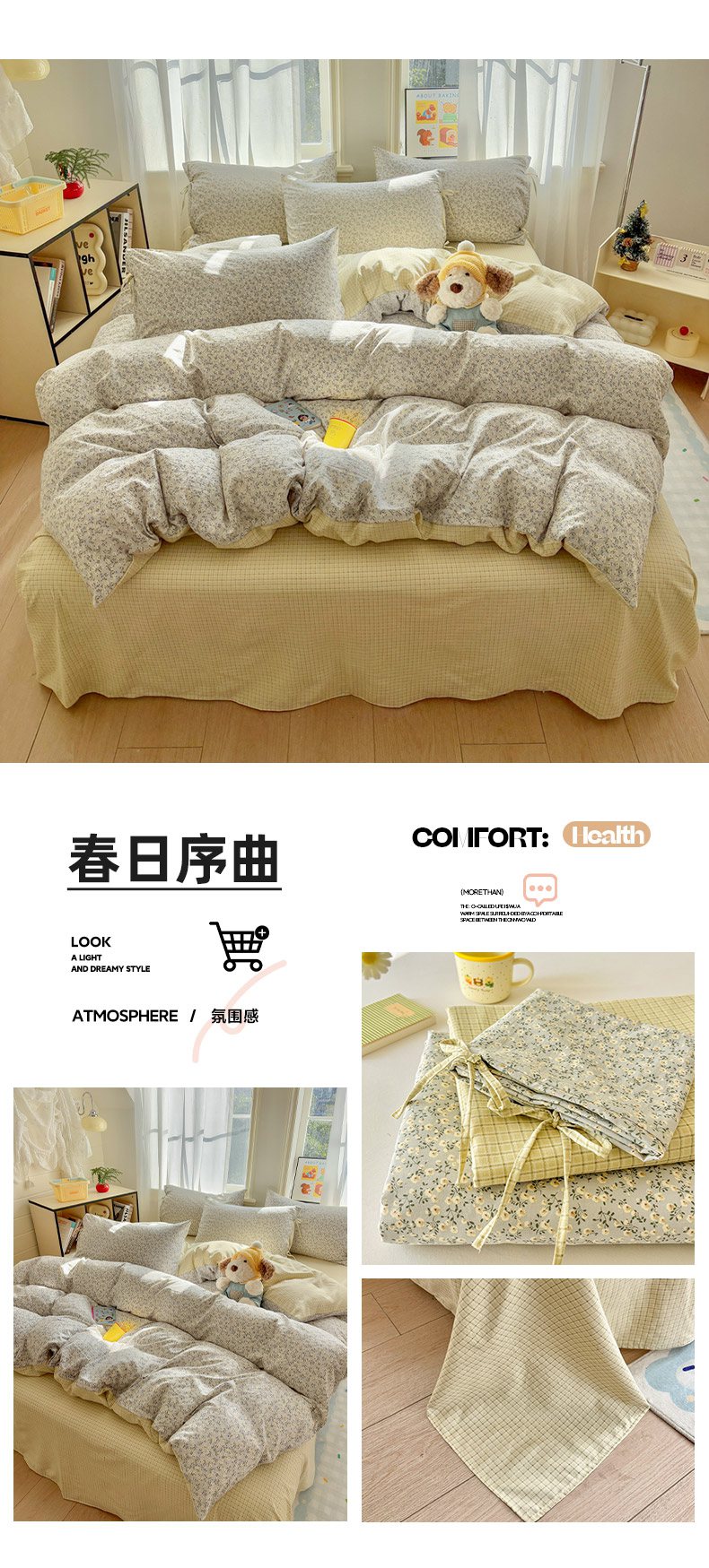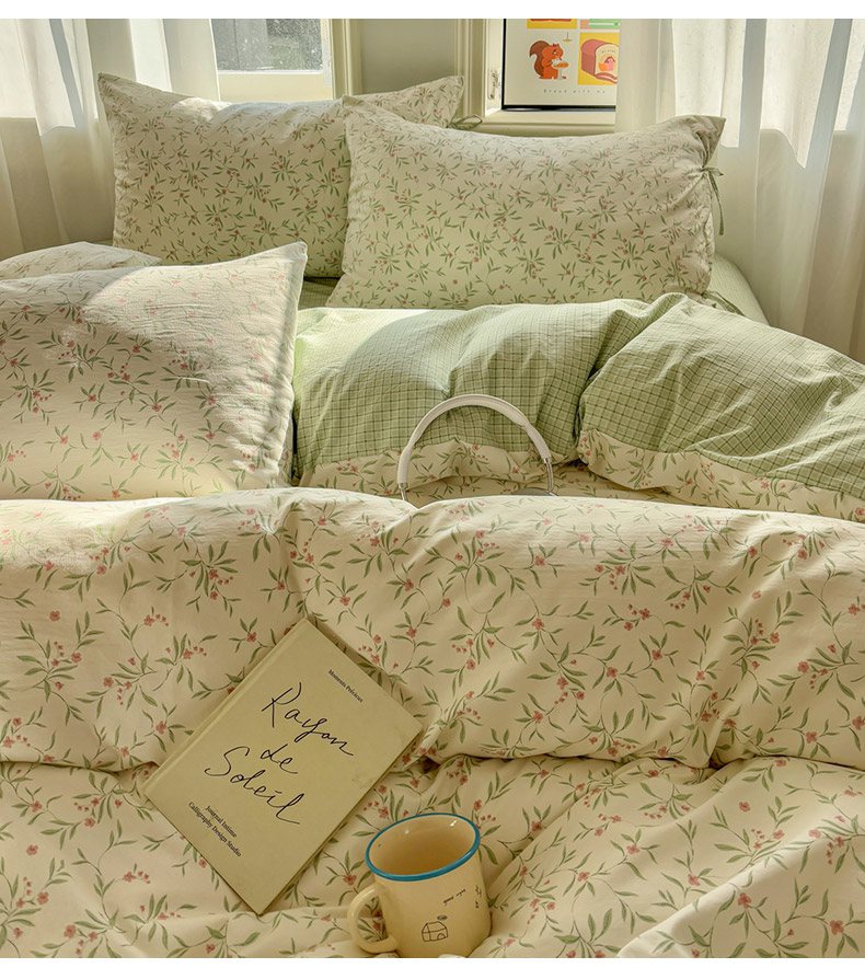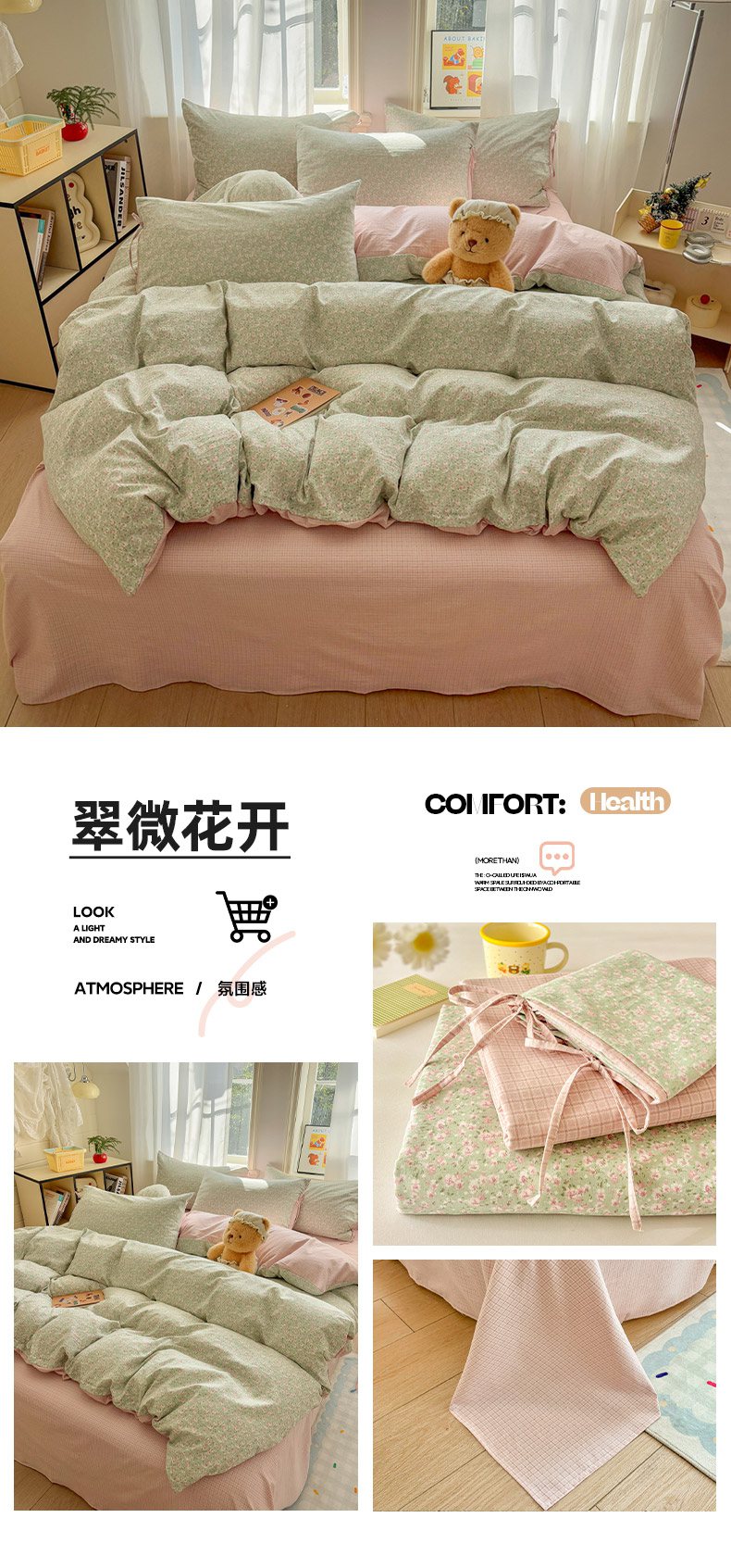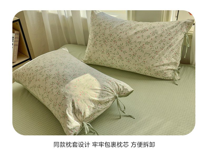当前位置: 91家纺网 > 商品网购 > 床品套件 > 四件套 > 化纤普通四件套 > 金梦拉家纺 2026新款小清新绑带格纹碎花系列四件套-花园里系列 花园里-清新绿