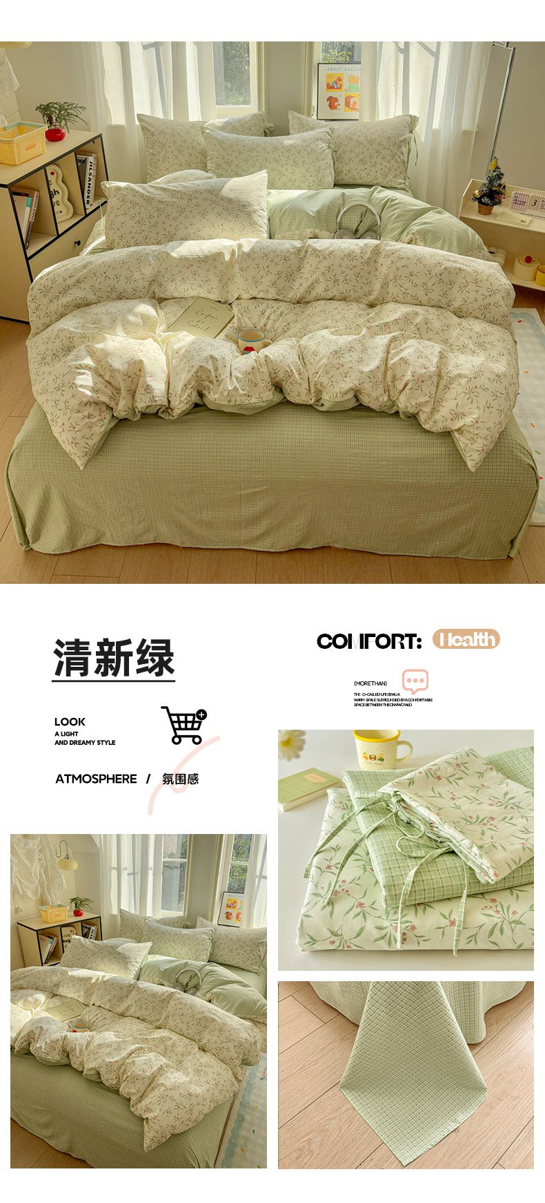 当前位置: 91家纺网 > 商品网购 > 床品套件 > 四件套 > 化纤普通四件套 > 金梦拉家纺 2026新款小清新绑带格纹碎花系列四件套-花园里系列 花园里-境禾咖