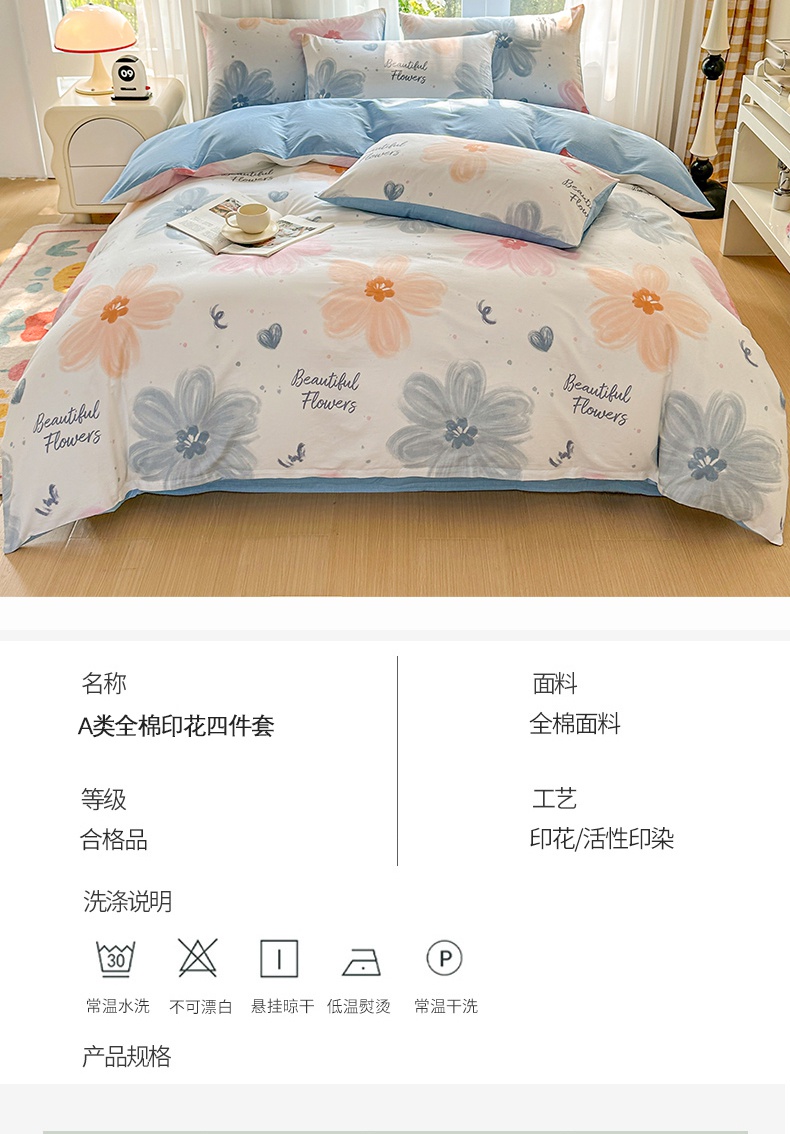 当前位置: 91家纺网 > 商品网购 > 床品套件 > 四件套 > 全棉普通四件套 > 宇彬家纺 2026直播新款13070A类全棉纯棉印花床单床笠款四件套和单被套喷气清新简约(缩水足可定做) 墨点动物
