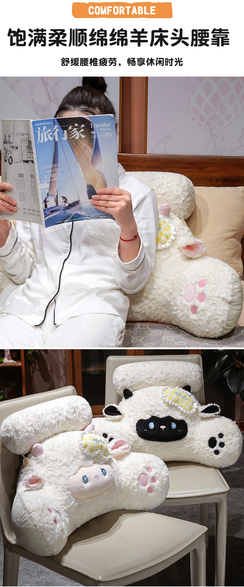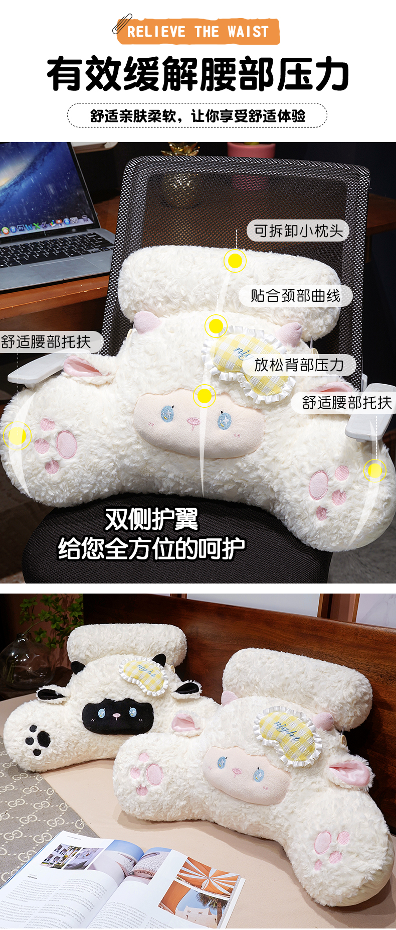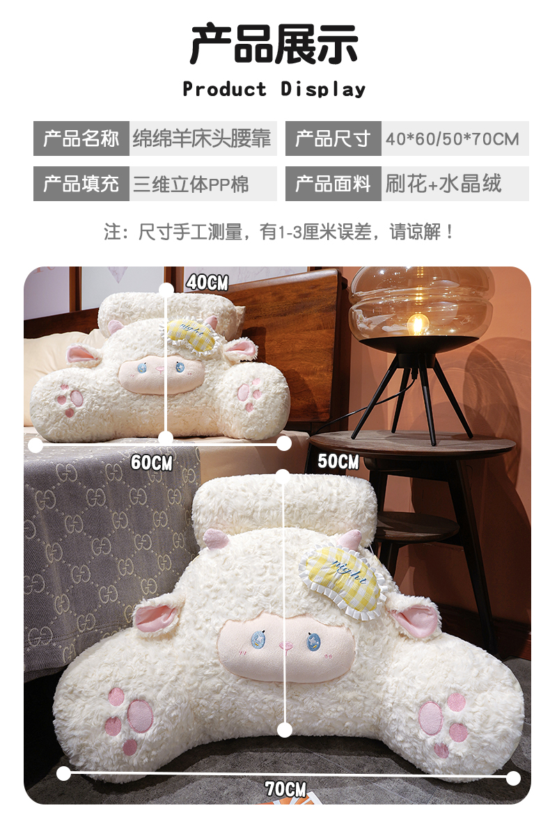 商品名称:(总)仟亿莱 2026年新款绵绵羊床头拥抱式腰靠