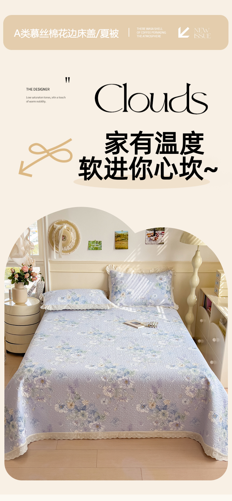 (总)叠派家纺 2026新款A类印花慕丝绵花边款床盖系列(抽空压缩可供跨境)提供买家秀,莫兰迪+浅紫,洛可可+粉,蓝庭叙+灰,锦芙+驼,金兰+黄,凡尔赛+粉,蓝漪+蓝,洛雅+黛紫,墨芳+灰,清漫+绿,波点序章+驼,青妍+粉,星心兔语+粉,熊兔叙+蓝,云菇森林+浅紫,木马童谣+灰,蛋糕熊+绿,甜梦熊+浅粉