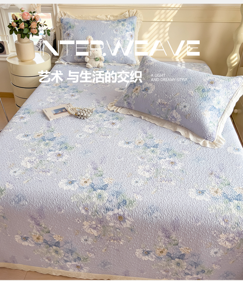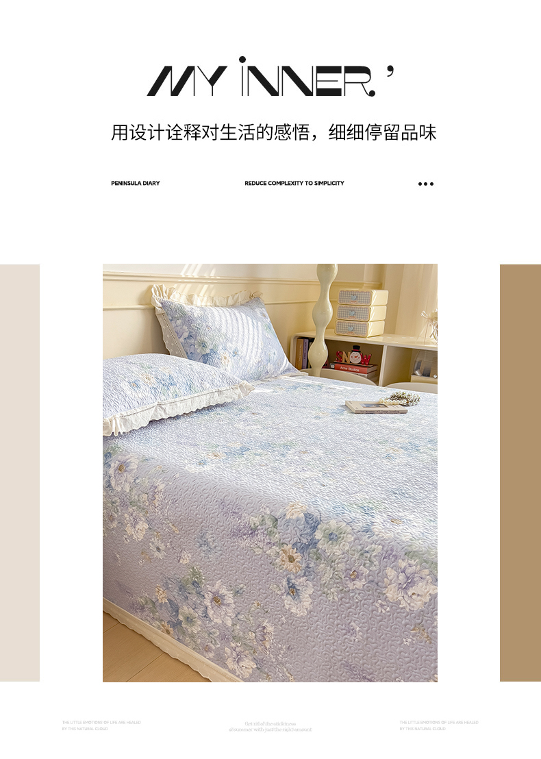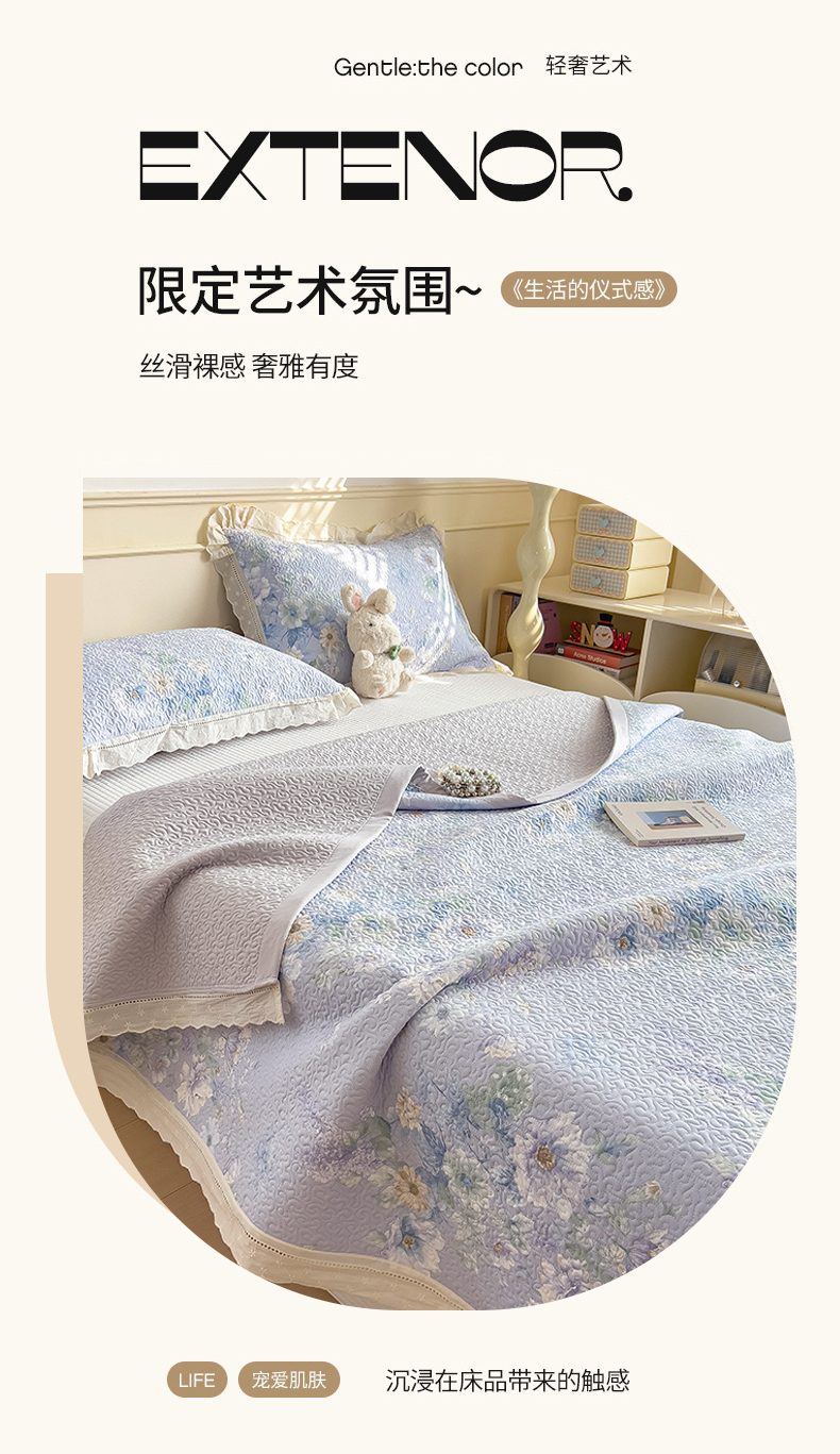 • 91家纺网 家纺一手货源 找家纺 (总)叠派家纺 2026新款A类印花慕丝绵花边款床盖系列(抽空压缩可供跨境)提供买家秀,莫兰迪+浅紫,洛可可+粉,蓝庭叙+灰,锦芙+驼,金兰+黄,凡尔赛+粉,蓝漪+蓝,洛雅+黛紫,墨芳+灰,清漫+绿,波点序章+驼,青妍+粉,星心兔语+粉,熊兔叙+蓝,云菇森林+浅紫,木马童谣+灰,蛋糕熊+绿,甜梦熊+浅粉