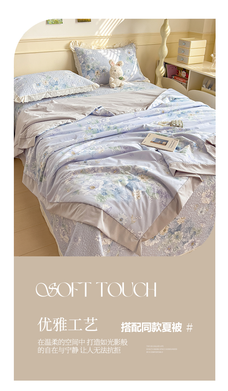 • 91家纺网 家纺一手货源 找家纺 (总)叠派家纺 2026新款A类氨纶凉感丝夏被印花空调被西瓜夏凉被直播,爱心恐龙,格子蝴蝶结,花丛兔,花季小狗,蓝楹碎影,浪漫花语,浅豆沙,柔紫,天青,雾蓝,云灰