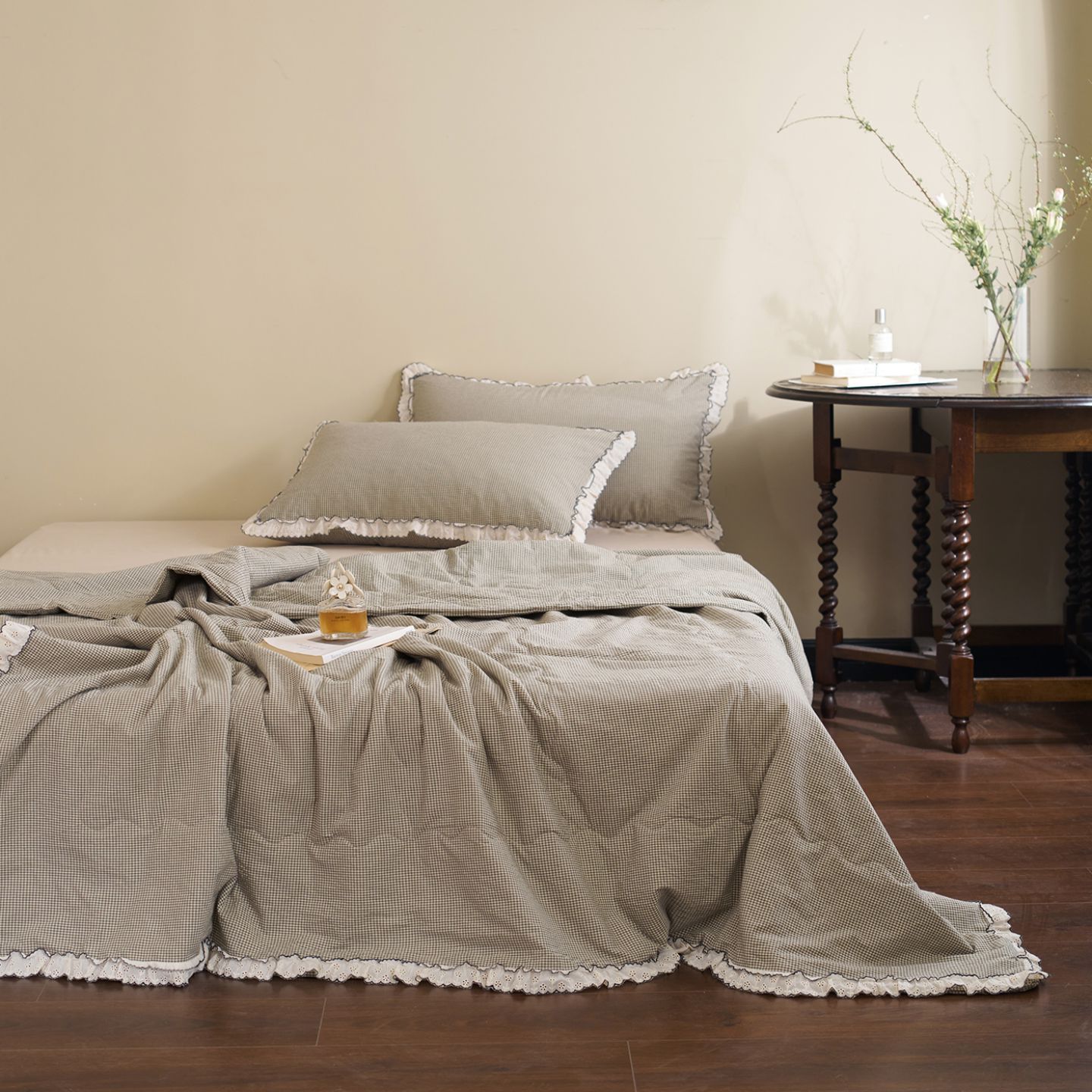 洋铭区(原狠狠爱) 2026新款色织水洗棉花边夏被 小格子-甜蜜灰