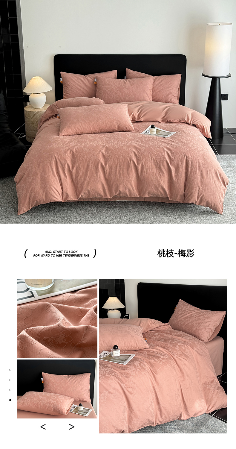 (总)简宜家居(朝初家纺) 2026新款四季40支全棉提花纯棉四件套--彩绘系列,青禾纹-松烟,素缕-留白,彩绘-橘光,粉嫩-梅影,摩卡暗纹,青禾纹-墨黑,青禾纹-奶咖,青枝-梅影