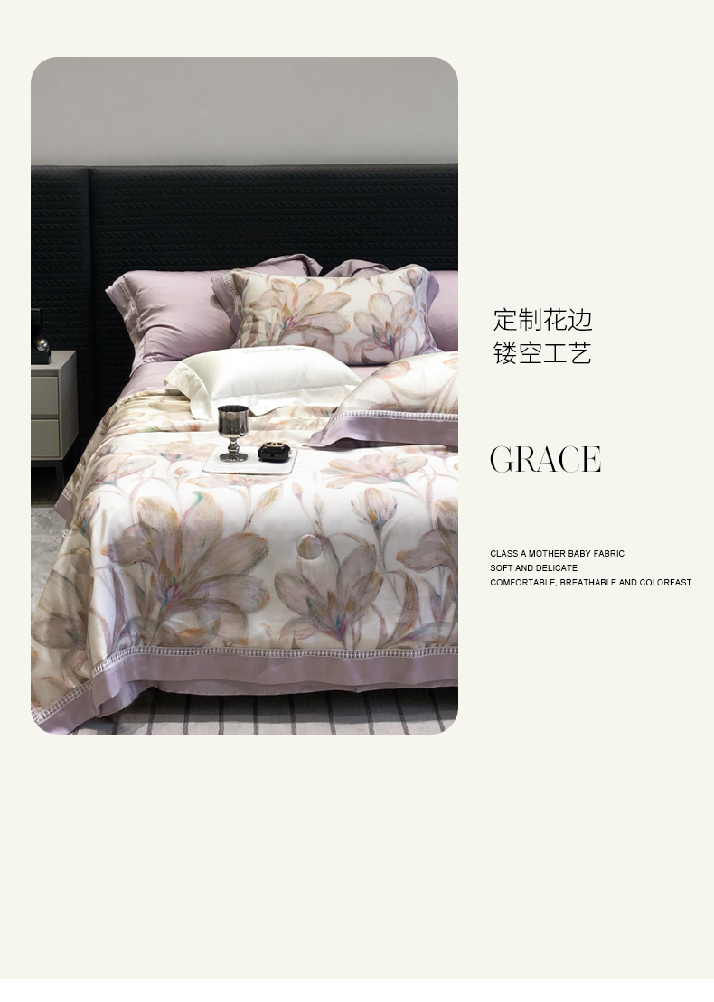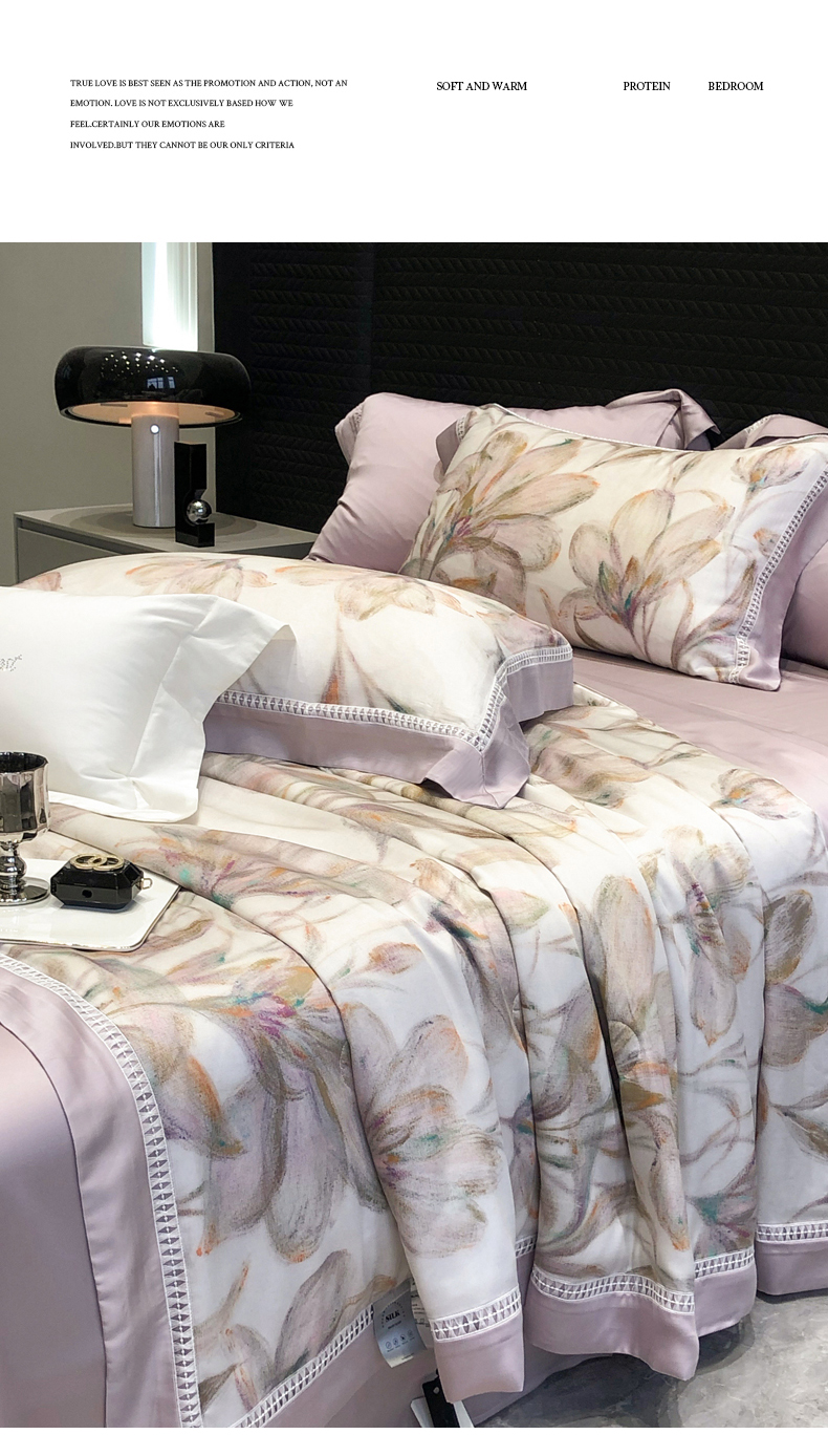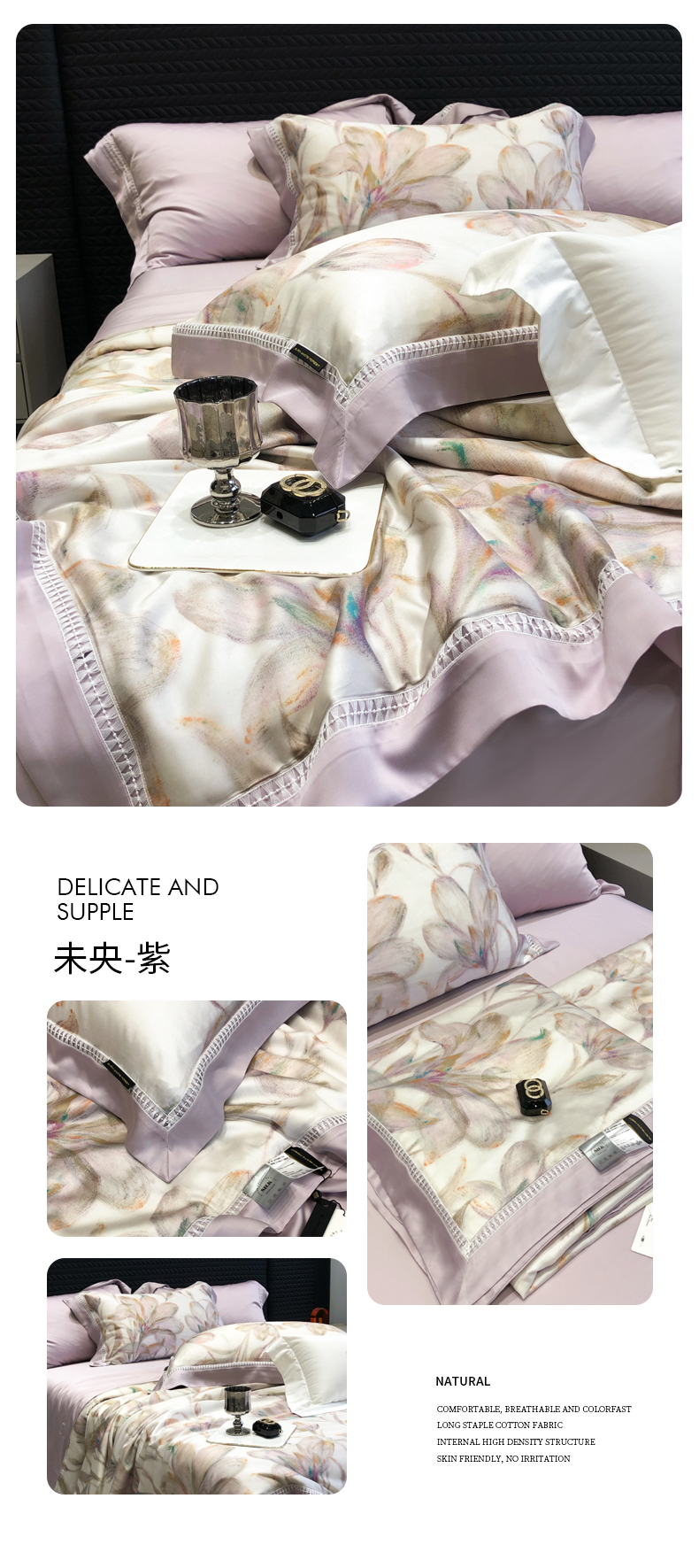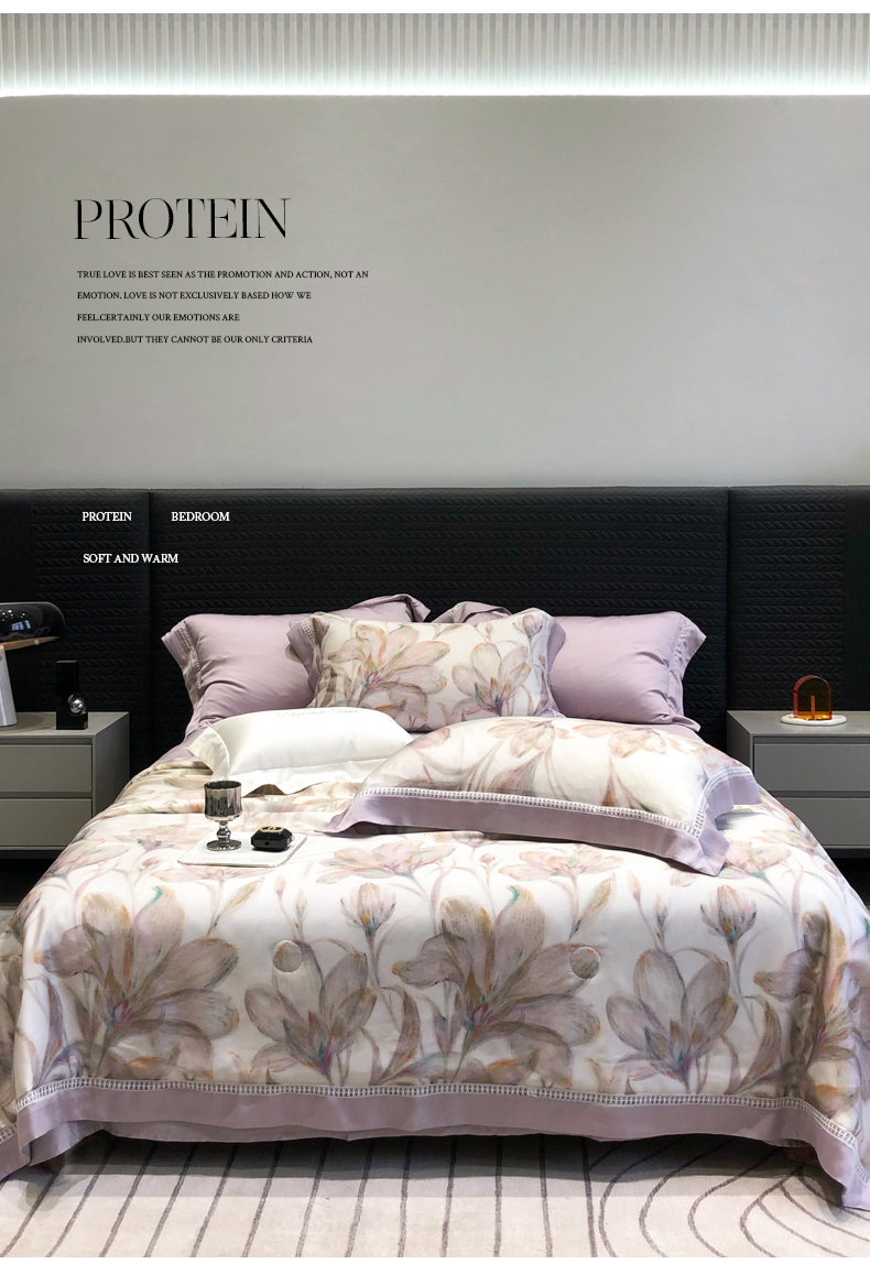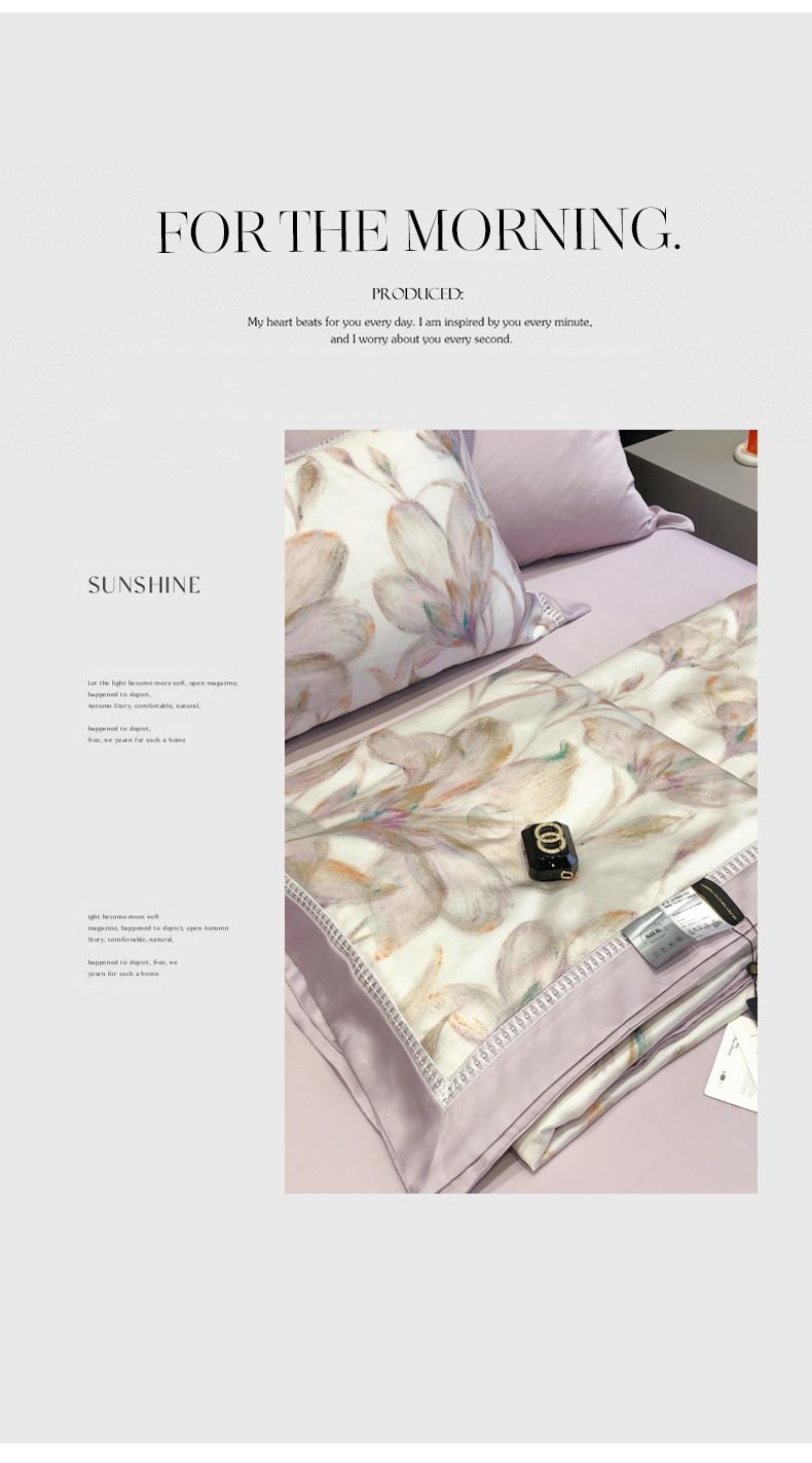 当前位置: 91家纺网 > 商品网购 > 床品套件 > 四件套 > 夏被四件套 > 黑白森林 2026新款天丝印花夏被四件套系列 未央-紫
