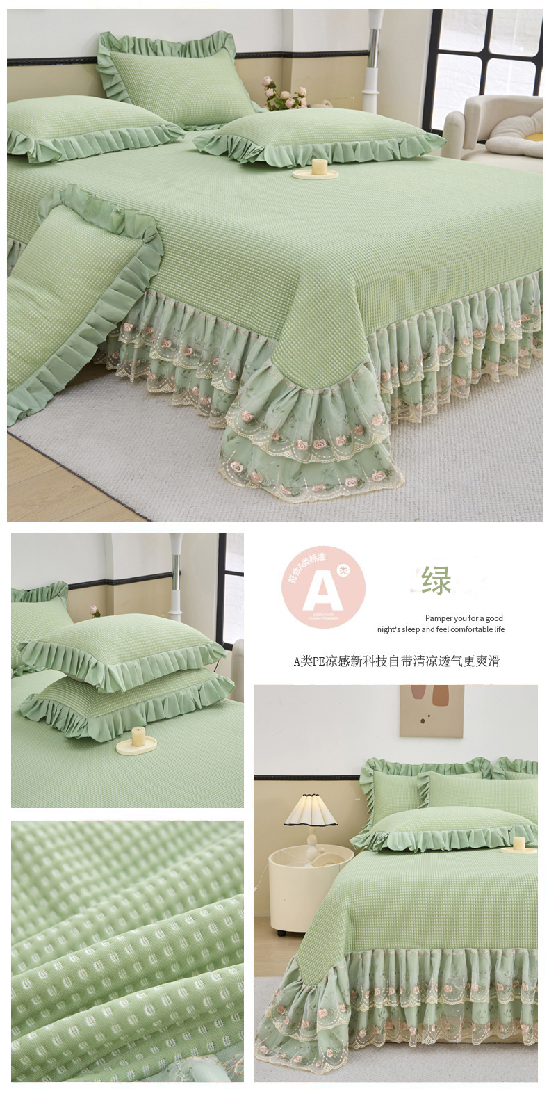 (总)能好家纺 2026新款高分子PE冰豆豆凉席床笠款,半夏粉,半夏灰,半夏蓝,半夏绿,轻奢粉,轻奢灰,轻奢蓝,轻奢绿