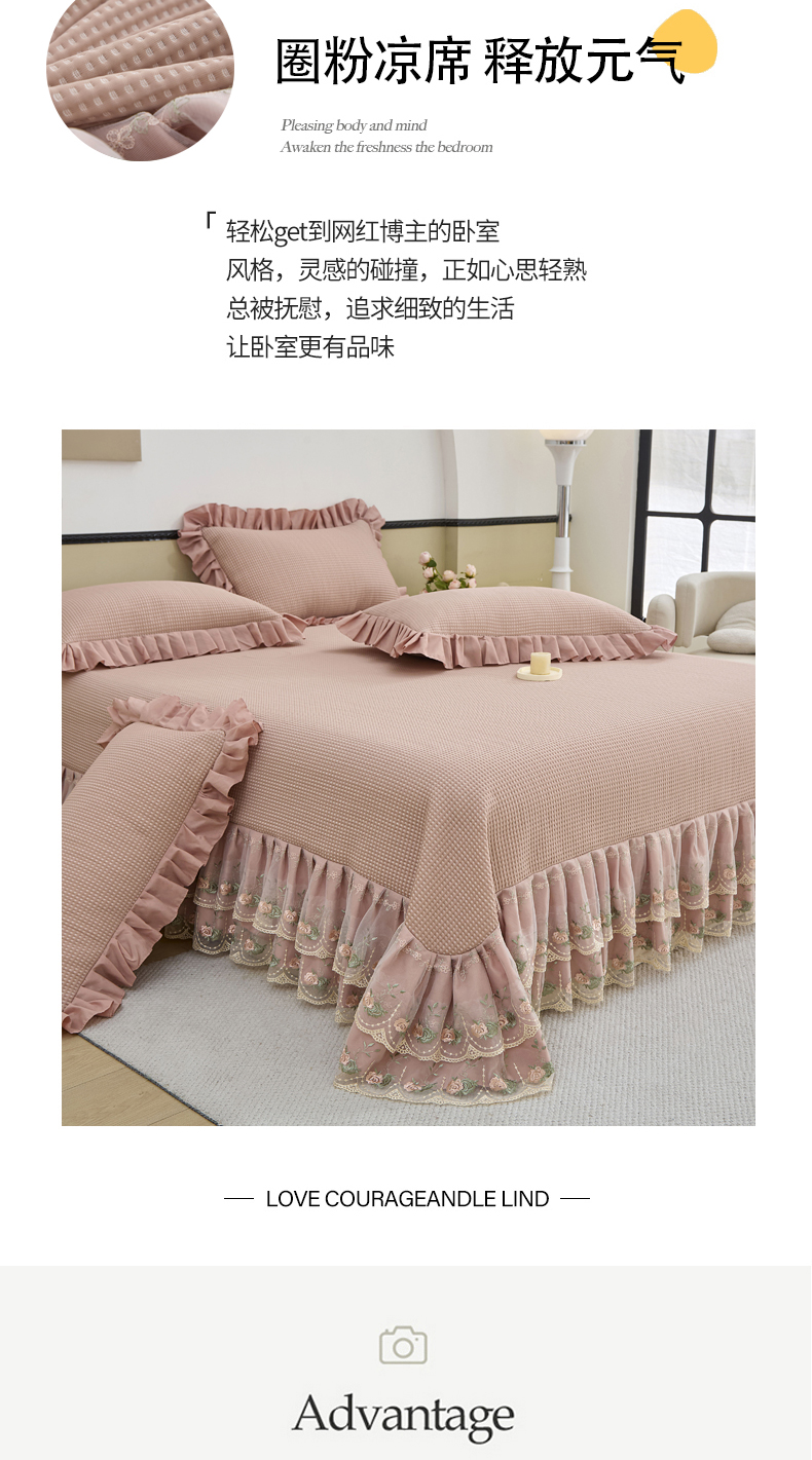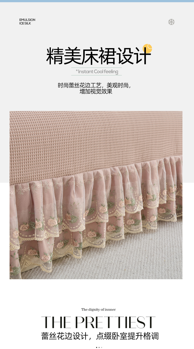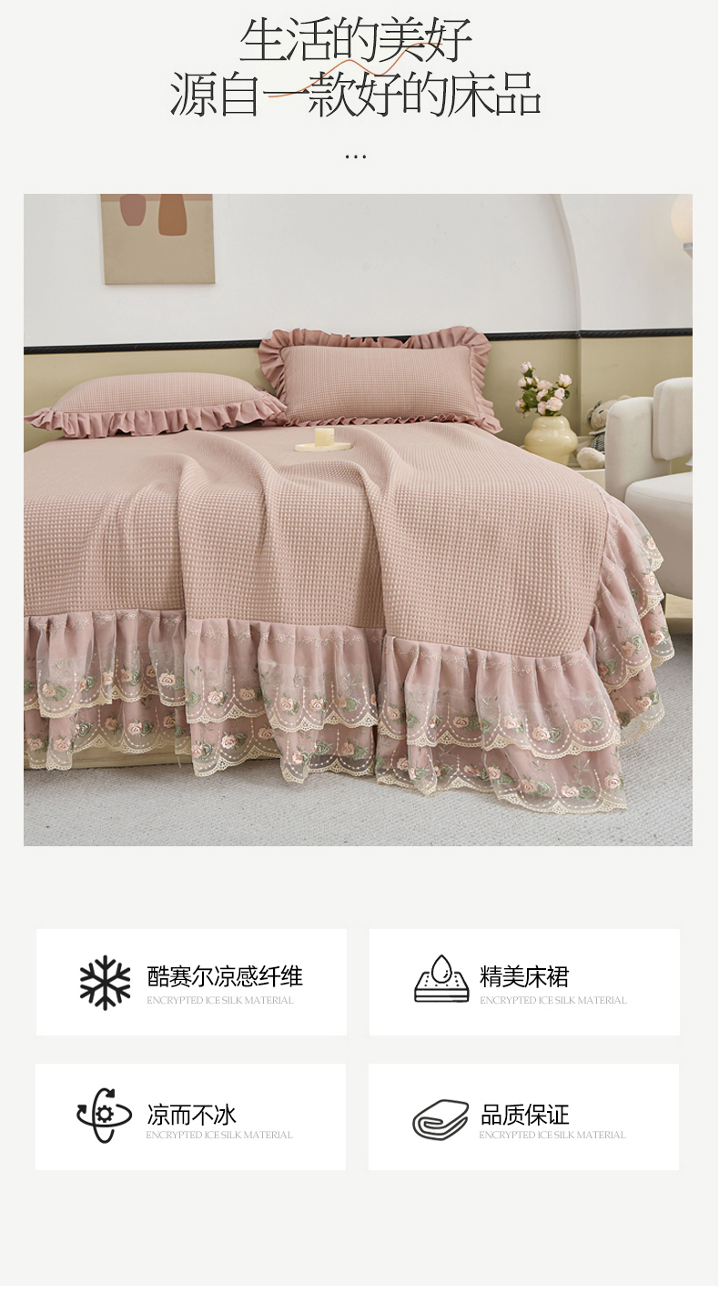 (总)能好家纺 2026春夏新款纯色+印花凉感丝乳胶凉席床裙款三件套,薄荷绿,豆沙,灰色,酒红,孔雀蓝,墨绿,雪青,棕色,古韵,小熊,雅韵,幽梦