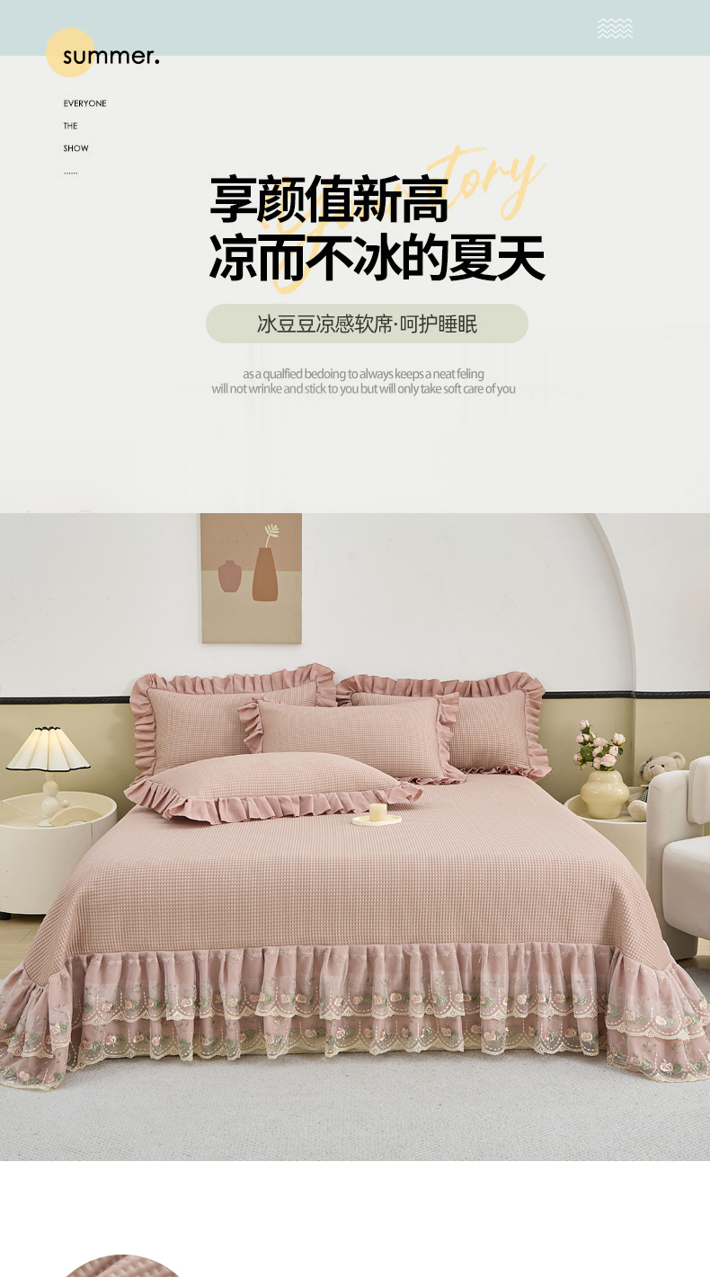 (总)能好家纺 2026春夏新款高分子PE冰豆豆床盖款凉席席子,半夏粉,半夏灰,半夏蓝,半夏绿,轻奢粉,轻奢灰,轻奢蓝,轻奢绿
