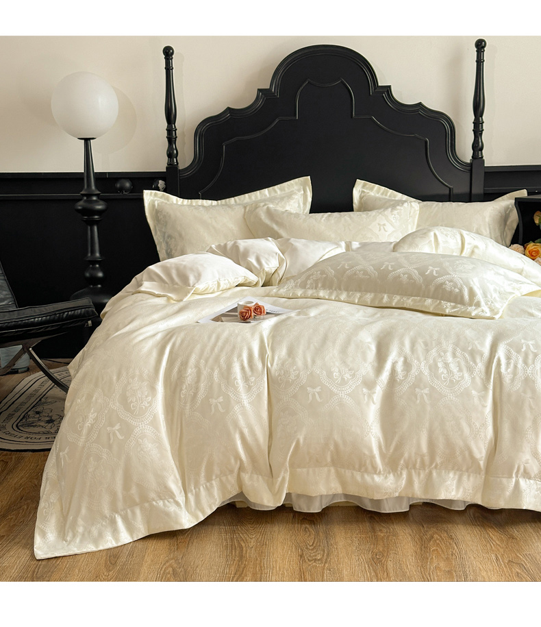 当前位置: 91家纺网 > 商品网购 > 床品套件 > 四件套 > 其它四件套 > 提花大世界 2026新款简奢被套款水洗真丝天丝提花丝滑床单床盖四件套 巴黎邂逅-玉瓷白