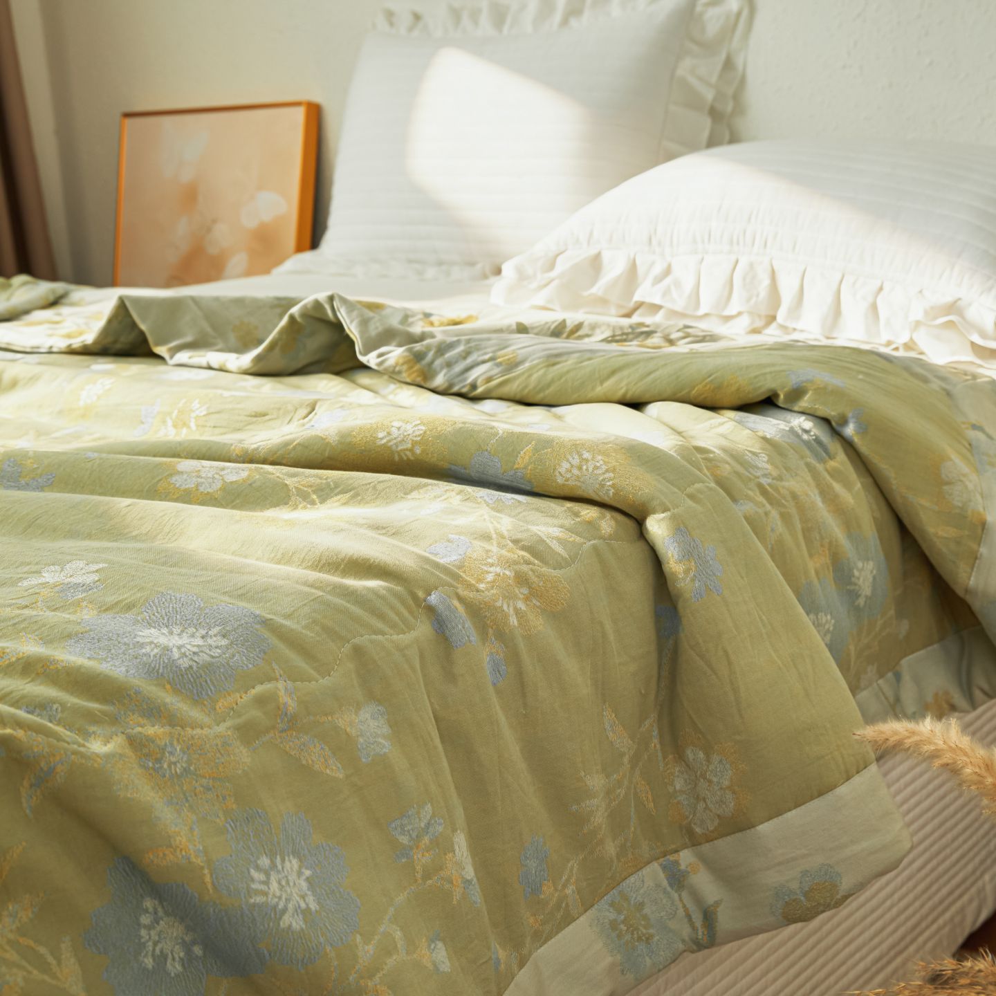 (总)睡棉坊 2025新款A类泡泡棉夏被韩版原创设计刺绣款空调被夏凉被,米白色,浅灰色,浅蓝色,浅玉色,水绿色,香槟色