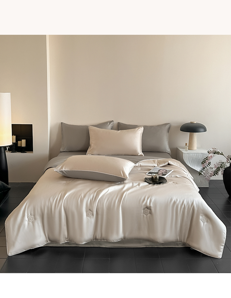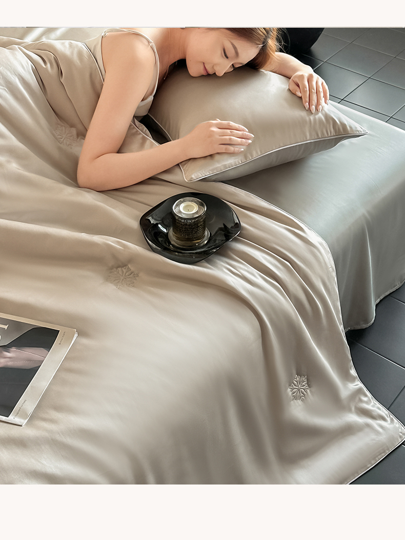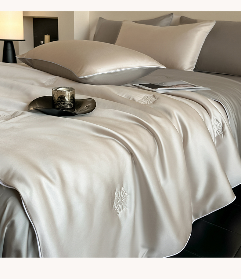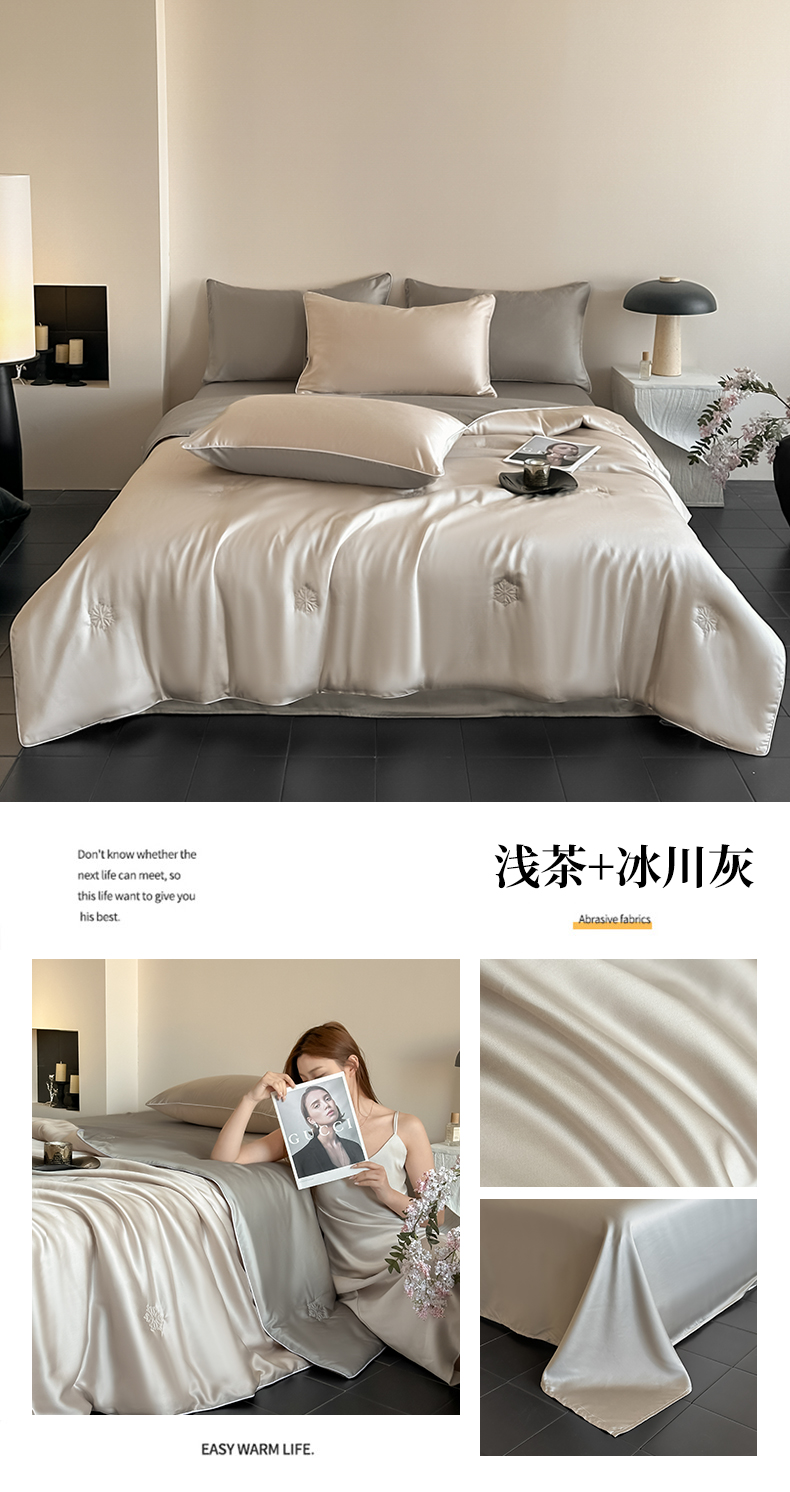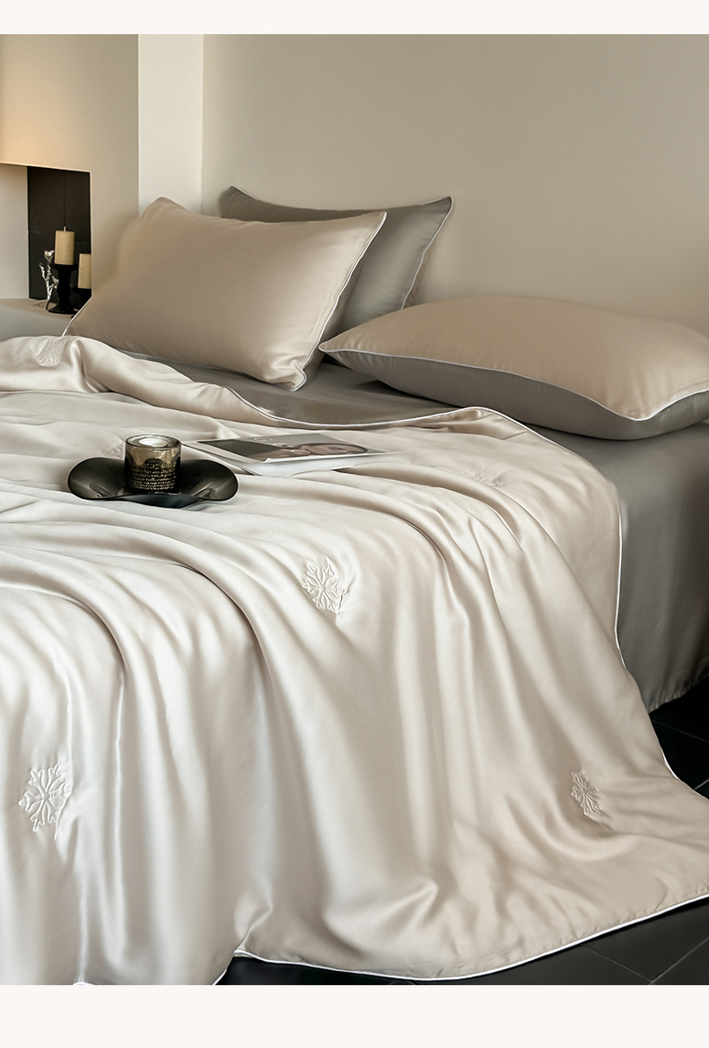 • 91家纺网 家纺一手货源 找家纺 无界 2026新款水洗真丝夏被-麻绳雪花绗缝-伊芙琳 伊芙琳 浅茶+冰川灰
